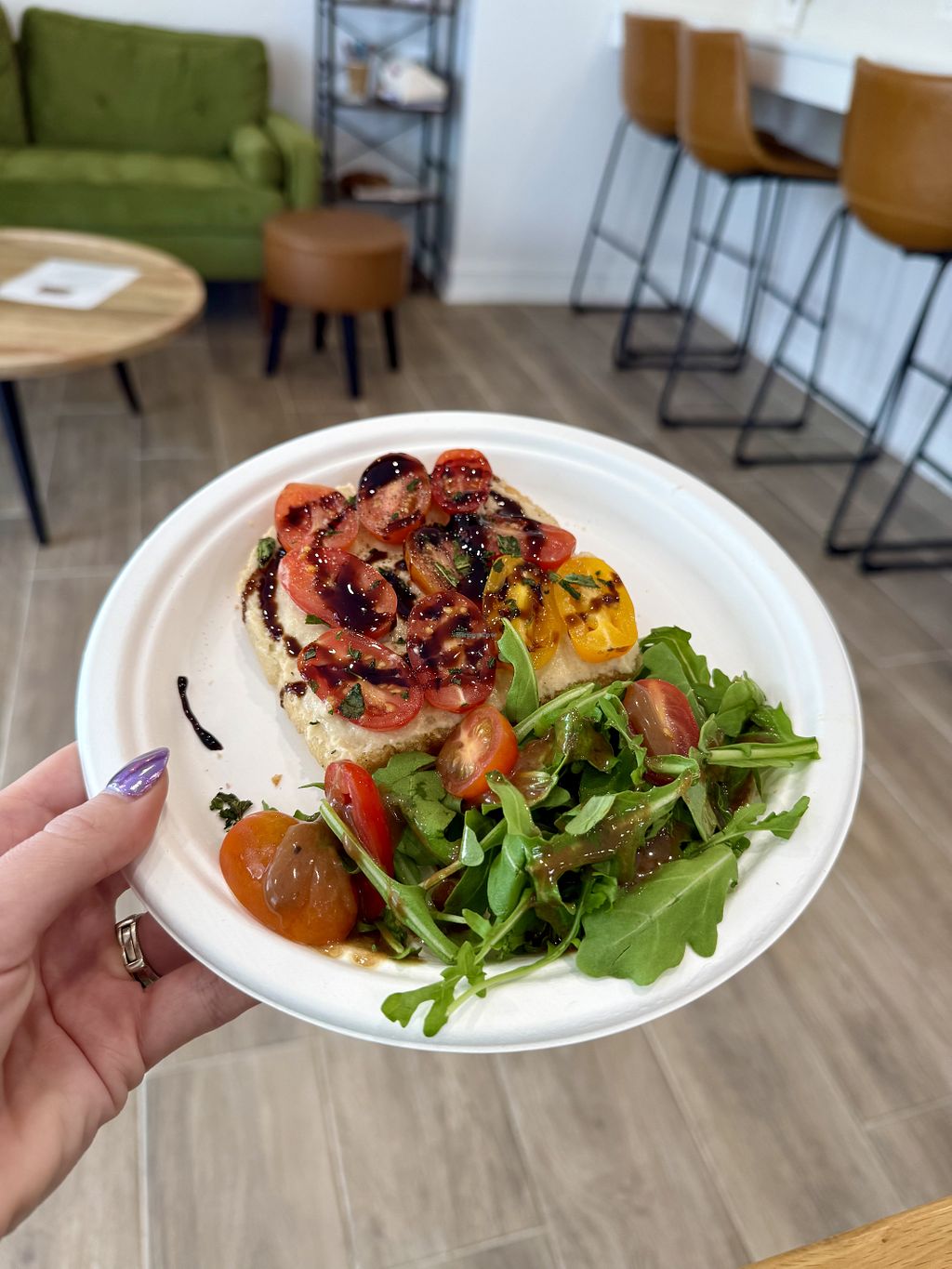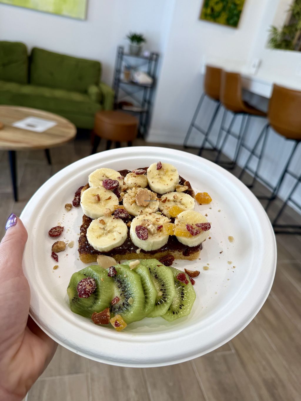 Fantastic little French Cafe serving all Ⓥ food. Clean and bright dining room. Radiant staff. I ordered the Pissaladiere listed as “carmelized onion and olive” but there were no lives in it and instead eggplant. Unfortunately I can’t eat eggplant and I noted this to staff but no offers were made to exchange the meal. I’m sure it was delicious and I’d go back but take their menus listings with a grain of salt if you have allergies.