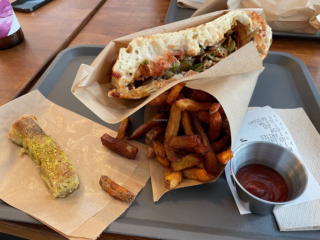 We had a Vebab and a Bol. We were starving, so maybe I’m overhyping it, but it was amazing. Not haute cuisine, certes, but amazing nonetheless. Love having a place with Seitan to actually get in some protein. Yeah, it’s greasy, but it’s a kebab. Special mention for the fries, which were clearly homemade. The sauces bring it to another level, and the cherry on top was the patient cashier who helped us decide on what to get. Definitely would come again!