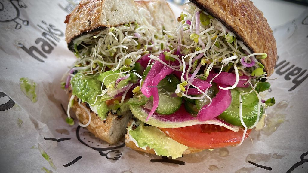 I’m reviewing it again because Hanks deserves it. Their vegan option (only one sandwich order selection but you can also get several bagels with just vegan cream cheese). The vegetables on top are SO fresh.