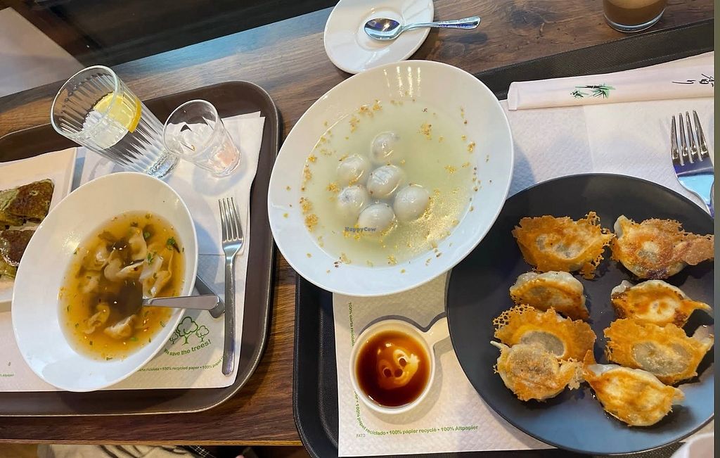 Chinese restaurant serving stir-fried noodle dishes, rice with vegetables, dumplings, gyoza, Chineses pancakes, soup and bubble tea. Food is vegan but reported to offer cow's milk for bubble teas. NOTE: please verify if cow's milk is served. Open Mon-Sun 10:00-19:30.
