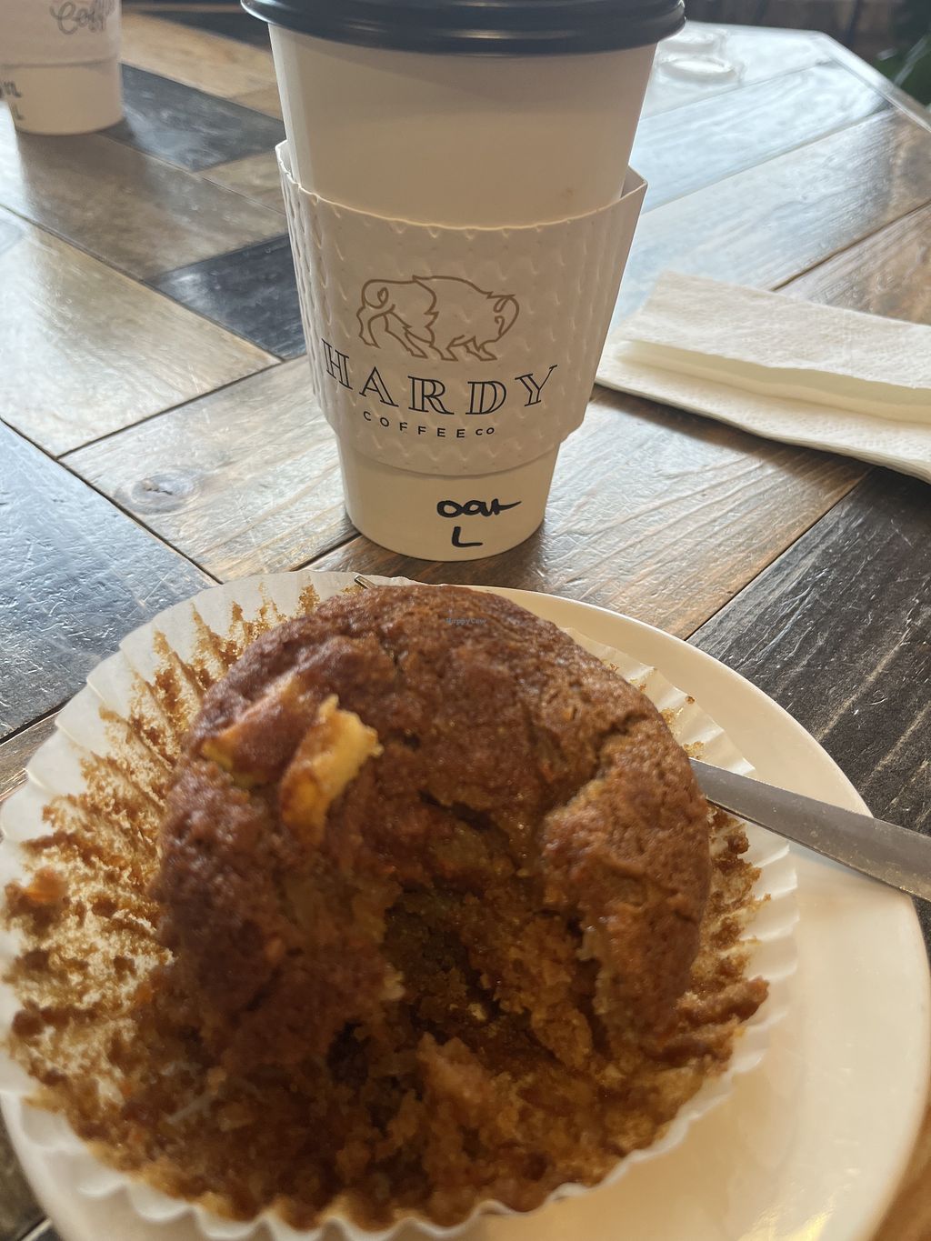 Hardy is my favorite stop for coffee when I am visiting Omaha. Very kind staff and cozy atmosphere, but plenty of seating. The morning glory muffins are vegan and delicious. They had another vegan muffin option as well as a vegan burrito on the menu. Choice of oat, soy, or almond milk for drinks. #Veganuary