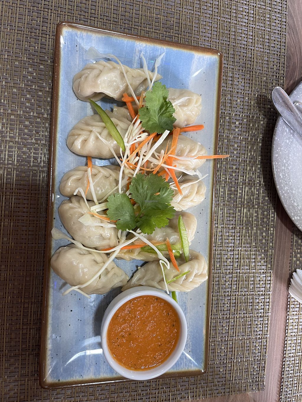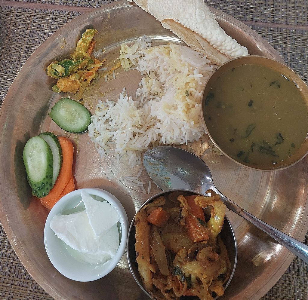 Tasty momo soup. My friend had a thali which looked good too. The samosa's were a bit too plump. The music was a bit too loud.