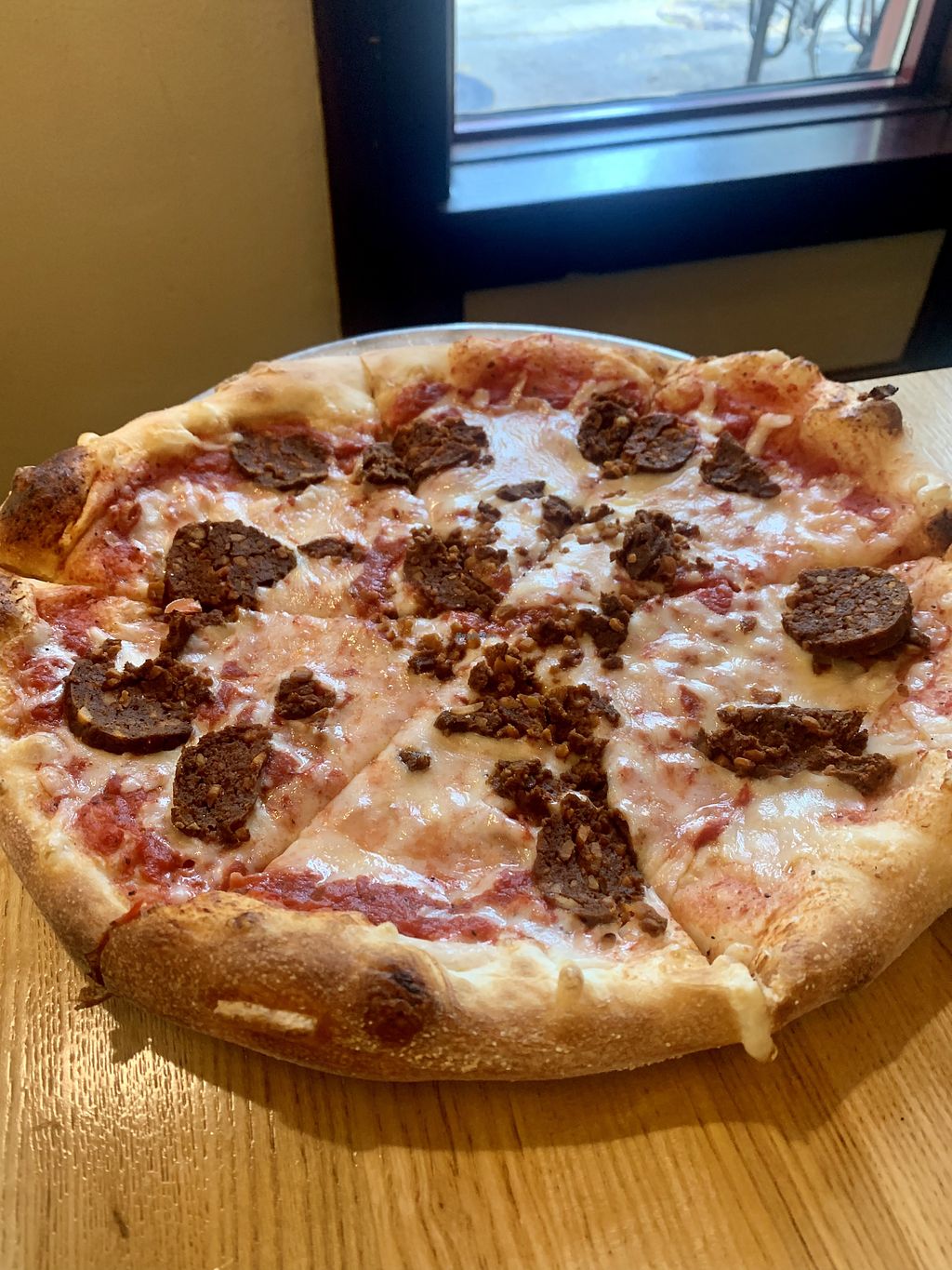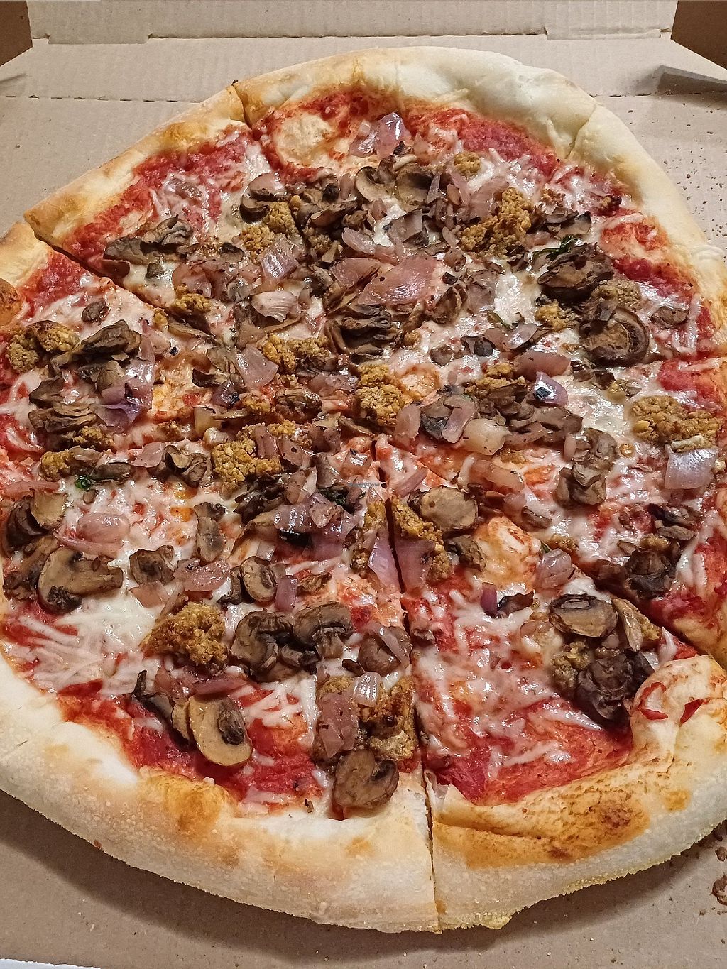 Vegan cheese pepperoni and walnut sausage was so good got a 16 inch and couldn’t be happier with ours