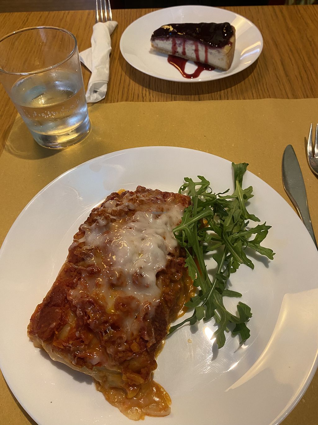 Lasagna with seitan ragù and frutti di bosco cheesecake