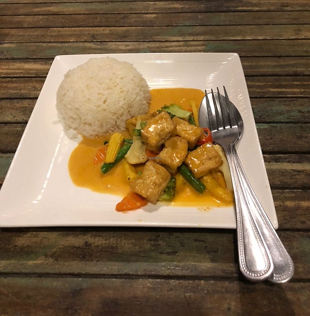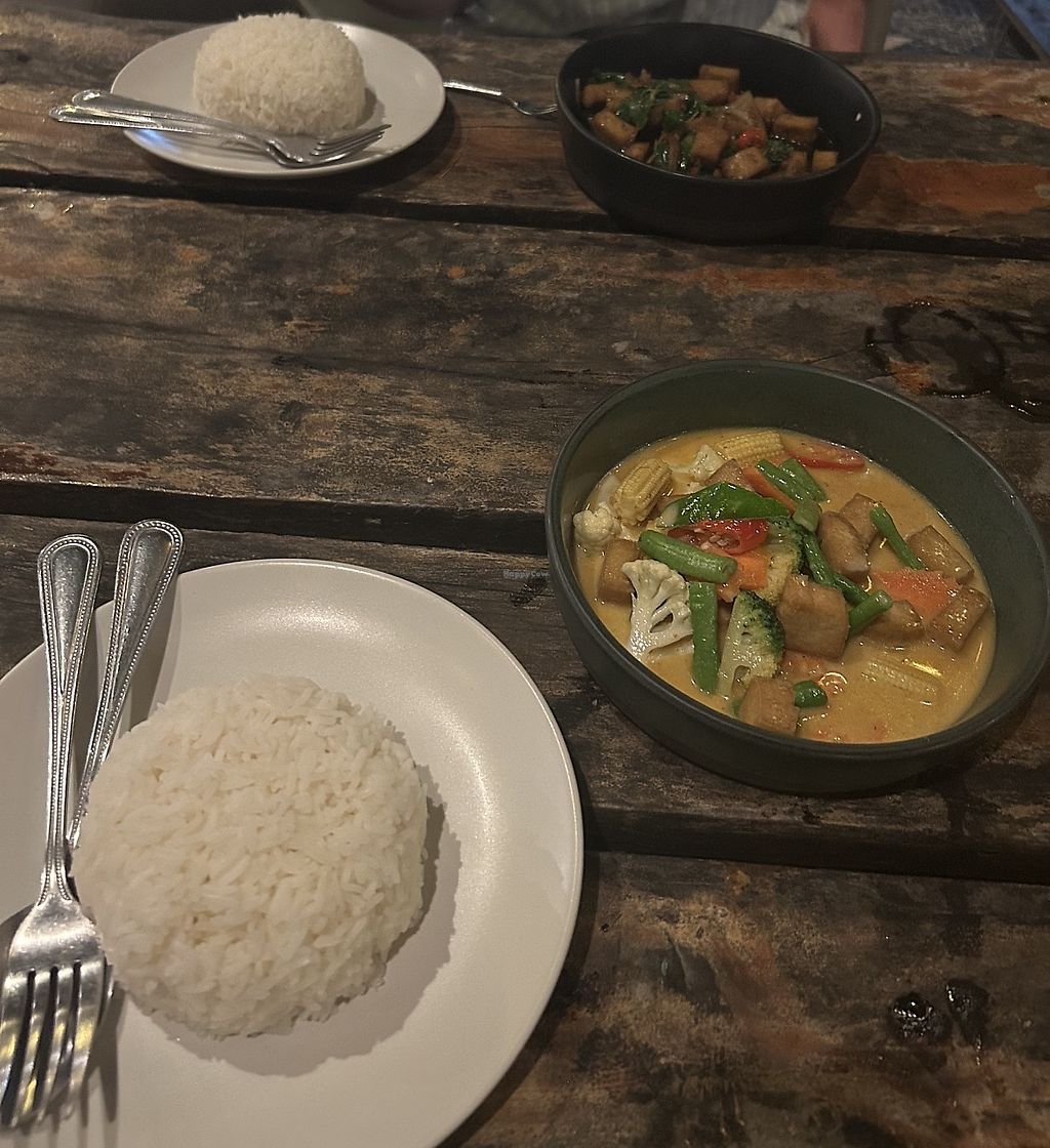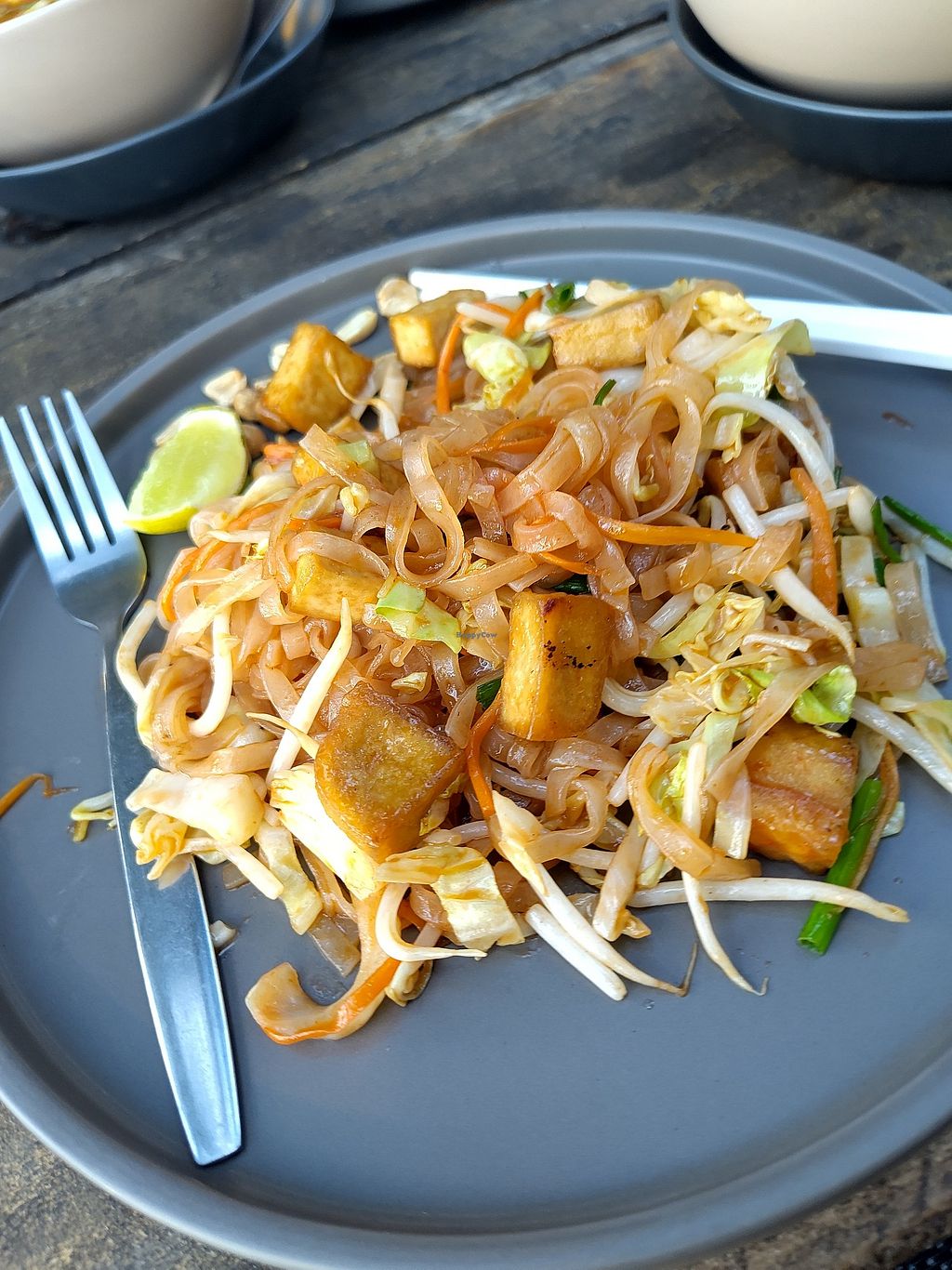 We went to try a different establishment than what we were used to on the island and it was a great discovery because almost all the dishes on the menu, and there are quite a few, had a vegan option. The staff is very friendly and is attentive to the diners at all times. We tried the spring rolls, the Massaman curry, the Panang curry, the flat noodles and the Tom Ka, and everything was really tasty, even some of the dishes were too tasty, or salty... The only drawback is the cocktails, if you want one that doesn't just taste like fruit this is not your place.