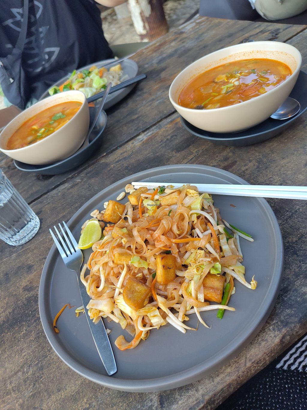 Really delicious Pad Thai and Tom Yum Soup! The portions are rather small, so better order two meals like soup and noodles. The staff was friendly and the ocean view was just great! The on-the-floor seats were more comfortable than they looked :)