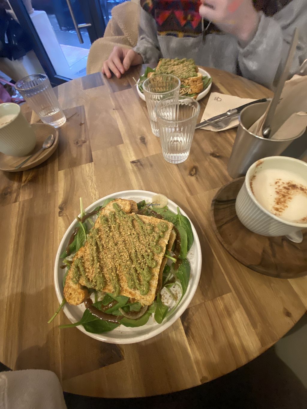 Vegetarian café offering a variety of vegan pastries and drinks, including pistachio cookie, chocolate cookie, vegan banana bread, and vegan cake. Open Mon 09:30-17:30, Tue-Sat 08:30-18:30, Sun 09:30-18:30.