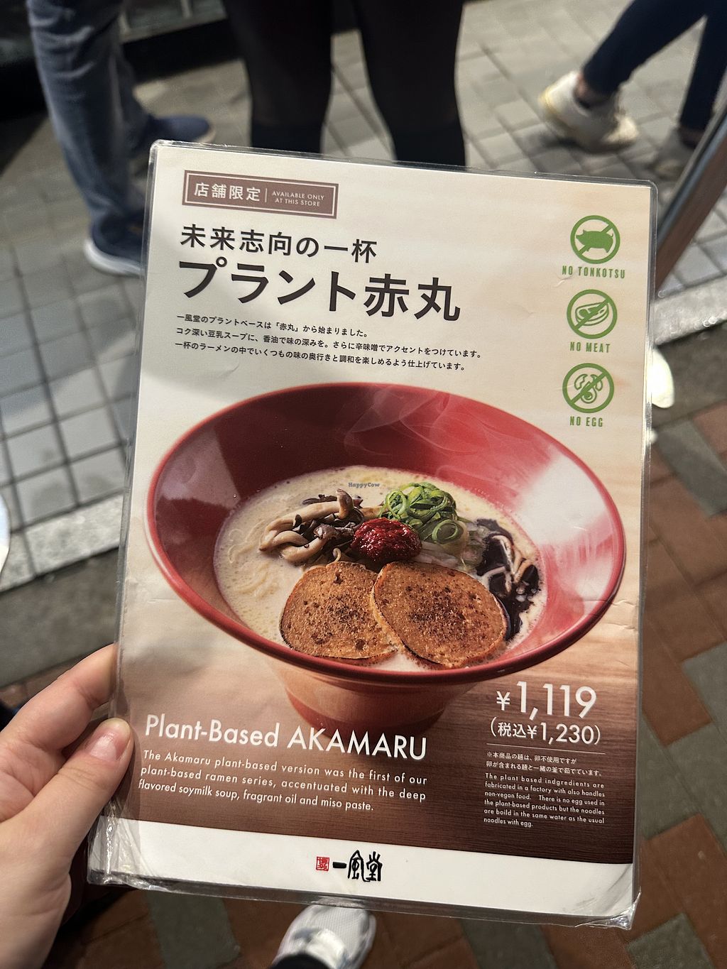 Nice place, we walked around the building to find it. There's one vegan option - the tablet has a seperate tab for this plant based dish. It's a ramen bowl and it tasted rich. As other review suggested, I agree choosing the additional mushroom topping is a good addition to the bowl.