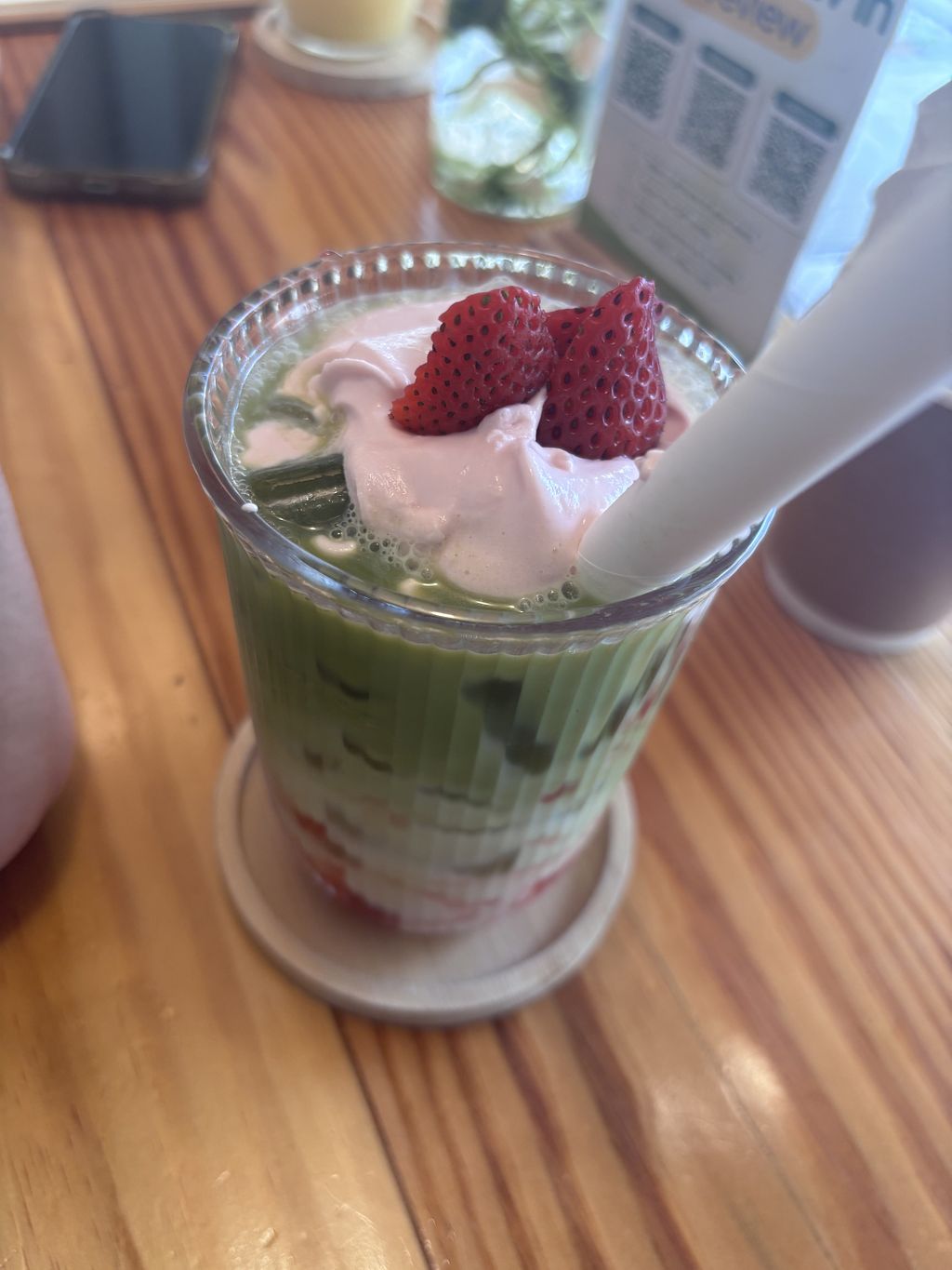 Also the strawberry matcha latte and almond toast is really good