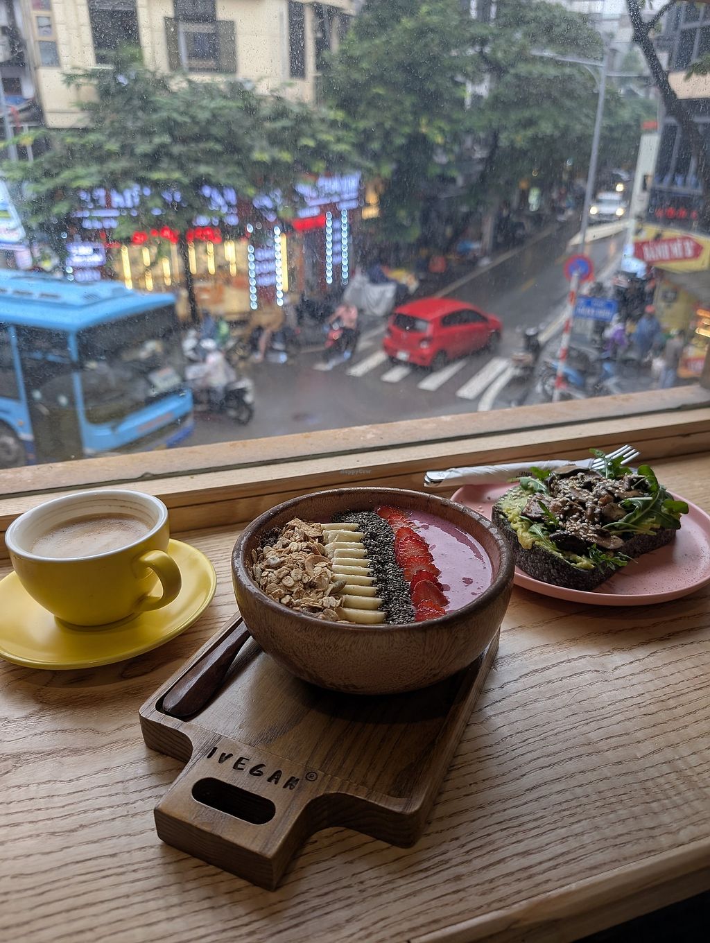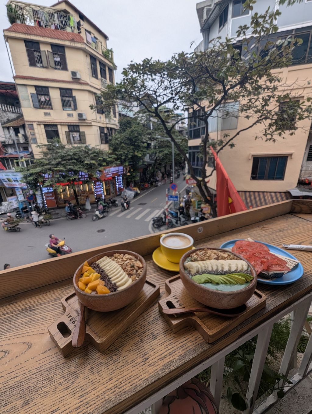 Green smoothie and best coffee in town.