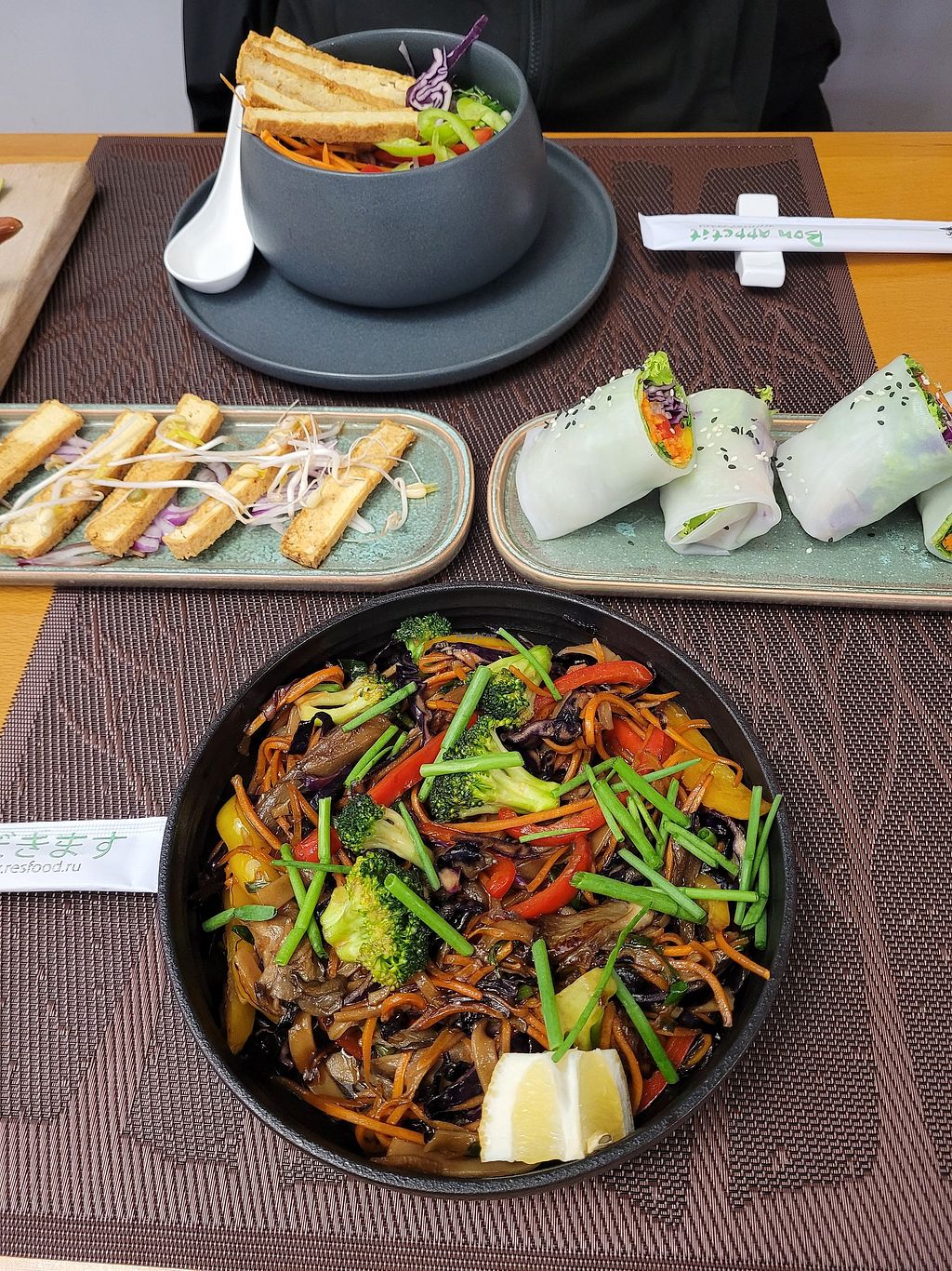 We were well cared for, although the options are limited, the prices are high and the portions are on the smaller side. Food was good, but they were out of tofu, which means they only had 2 or 3 options for us. The Armenian noodles and the spring rolls were both delicious. I would have just liked more of them. 🤗