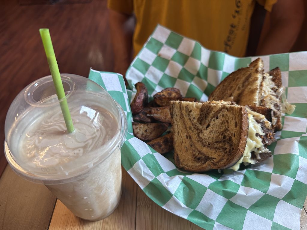 My wife and I had the gyro, reuben, cheese curds, and fries. The gyro and reuben were both ok, not great. The gyro had some sort of sauce, but not tzatziki. The fries seemed like cheap frozen fries. The breading on the cheese curds was great, but the cheese was just ok. The atmosphere was super strange as well. I'm always glad that a totally vegan place exists, but I don't expect I'll be jumping at the next opportunity to return to this one.
