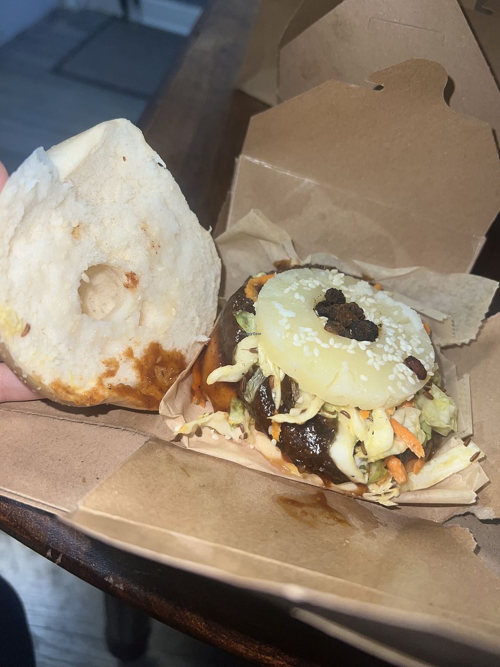There were so many things to choose from it was hard to decide. I got the chickn burger with sweet potato fries. The slaw, pickles, and Buffalo sauce really made it delicious and the fries were great. Service was quick and so kind. It is located upstairs above Sugar. Can’t wait to return on my next layover in Madison.