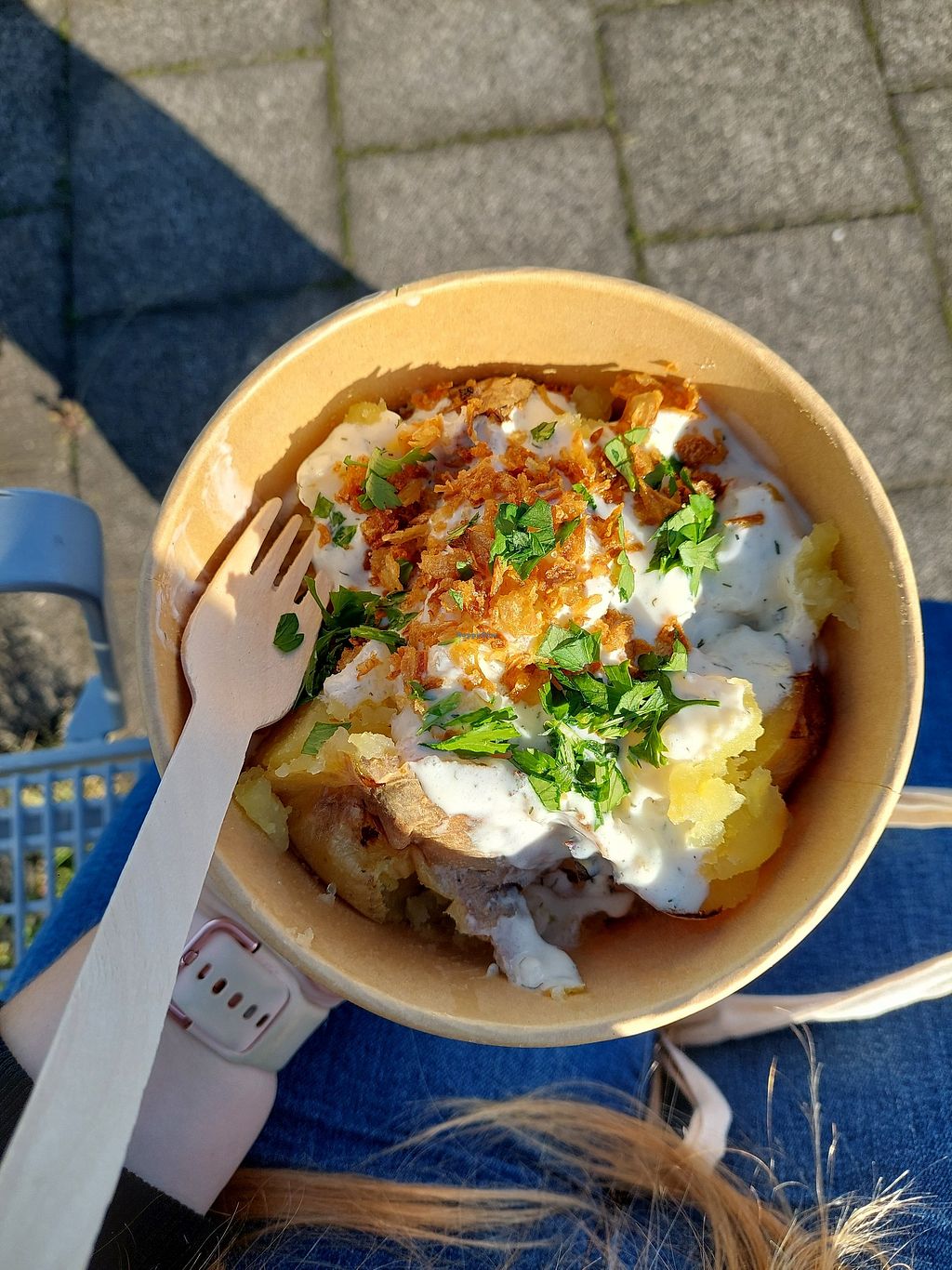 ähnlich wie die tüpische kumpir in der türkei- tolle toppings, davon 4 als vegane Option, sehr lecker!