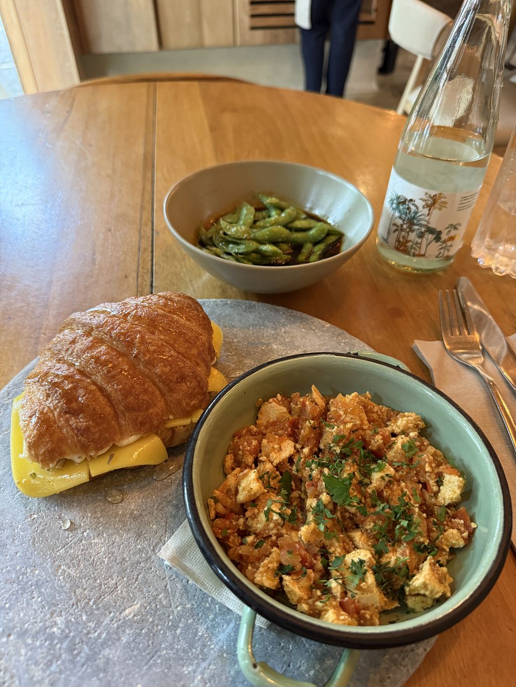 We came for breakfast and ordered a tiramisu and the toasted cheese croissant that came with a small tofu scramble side. The croissant is drizzled with vegan honey and truffle oil which makes a really flavorful combination. The tiramisu was a little muted in flavors (I don't think it had liquor in it) but nice otherwise. There wasn't a lot to choose from in terms of baked goods but apparently more is available in the early afternoon.