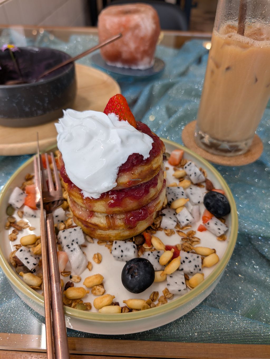 Ig unique item peanut butter pancake with granola topped with strawber…