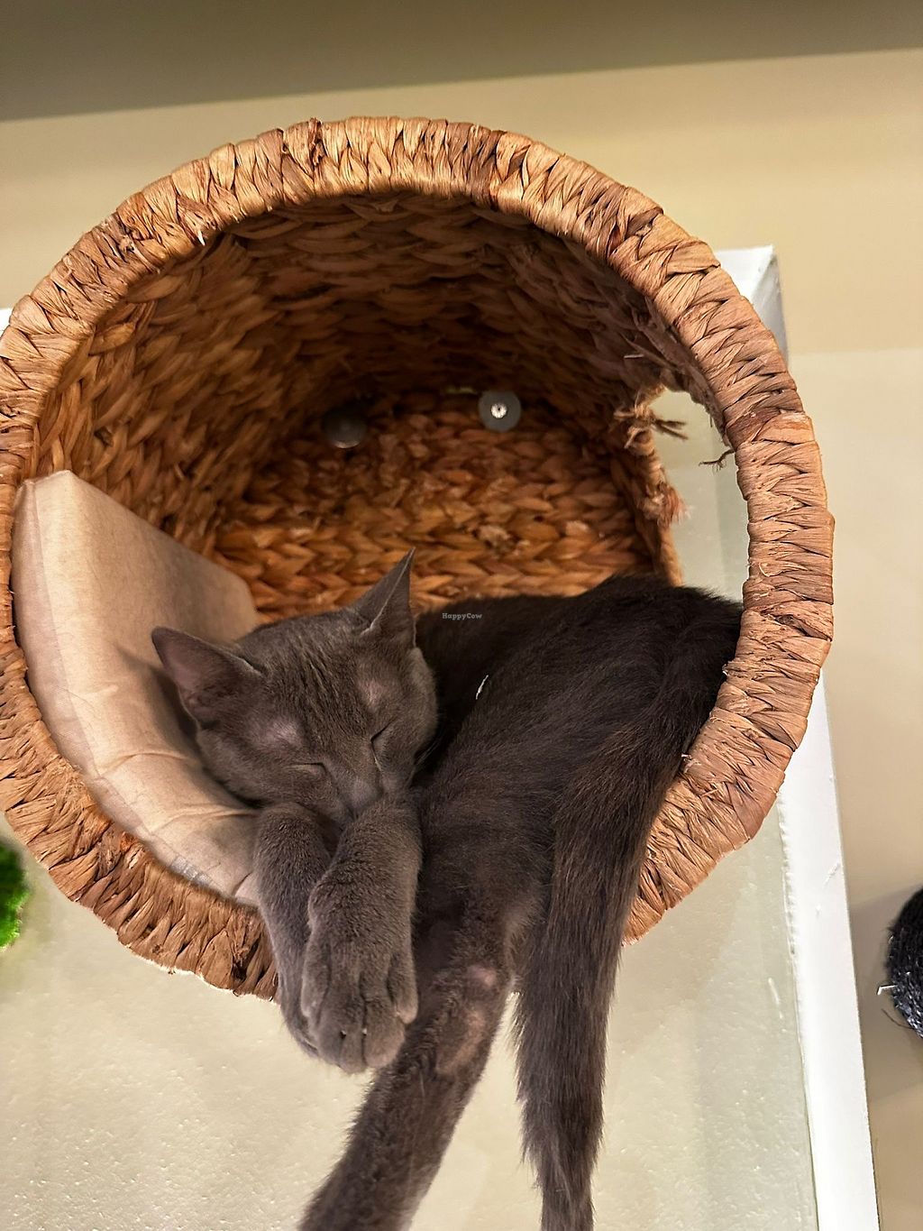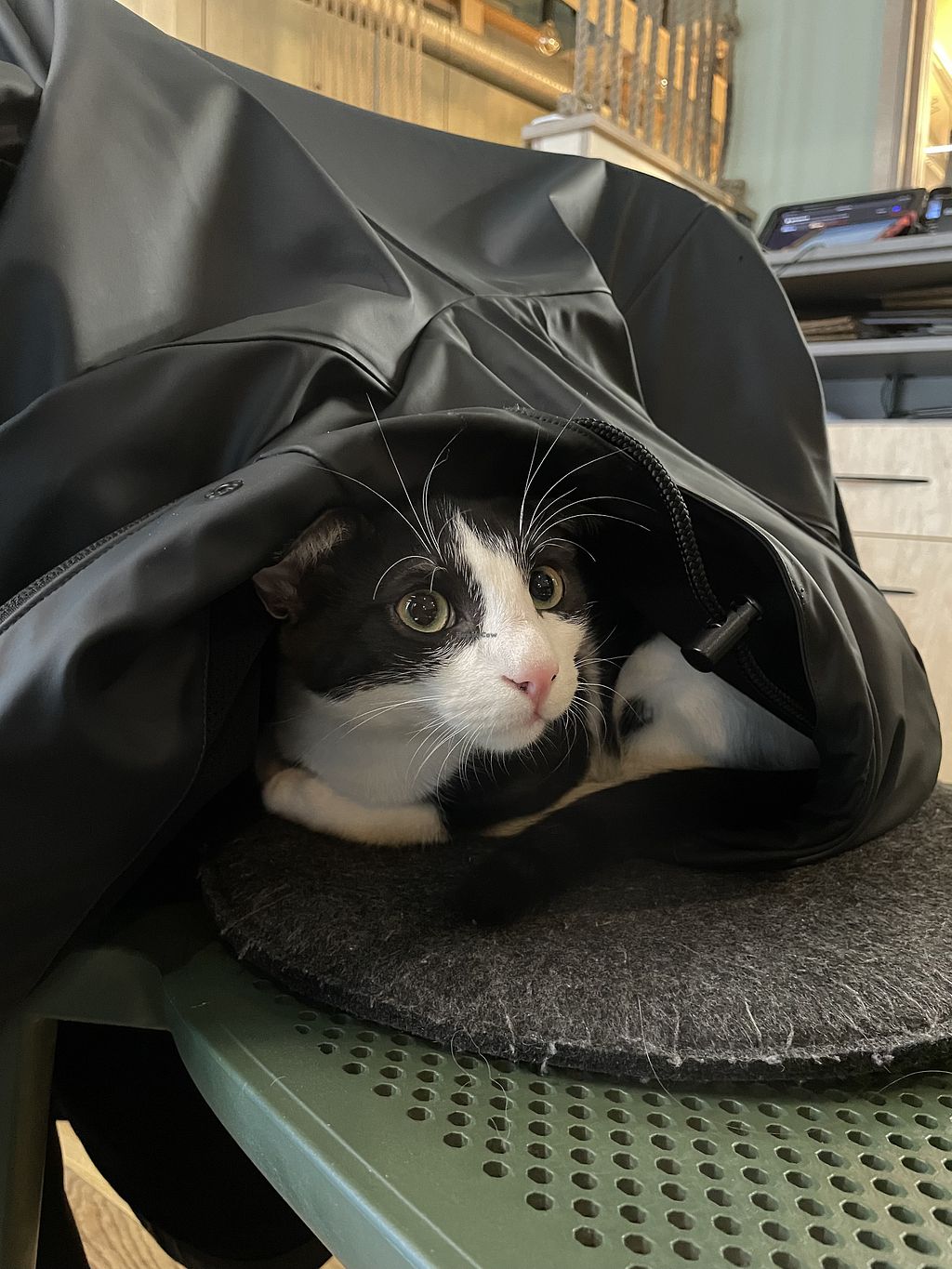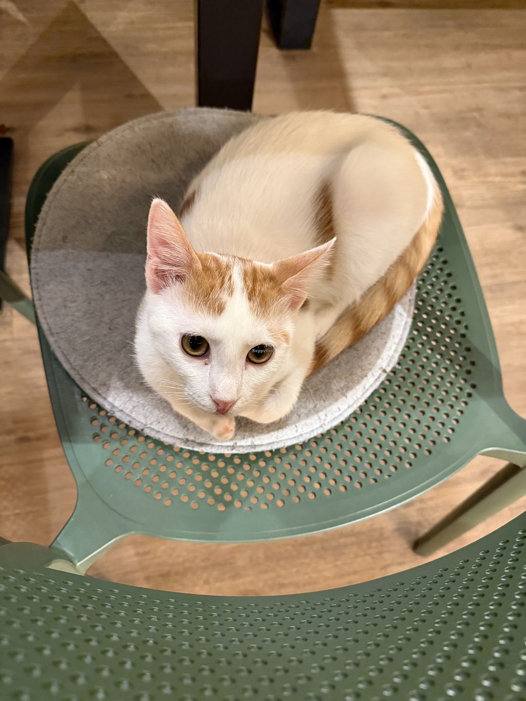 Beware of Tofu. He is very interested in looking at your food and to sneak around you. It is not allowed to feed the cats and you should follow the rules even if the cats are precious.