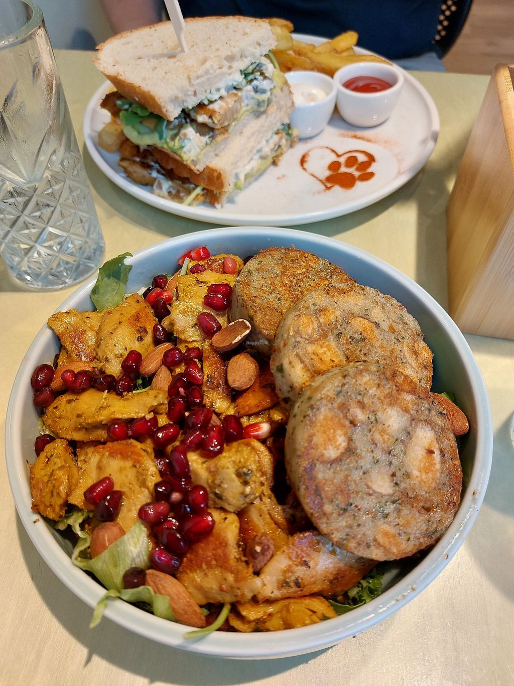 Fully vegan place with CATS! I would recommend this to anyone who visits Munich. The food was great, prices okay and service very kind. I loved it!