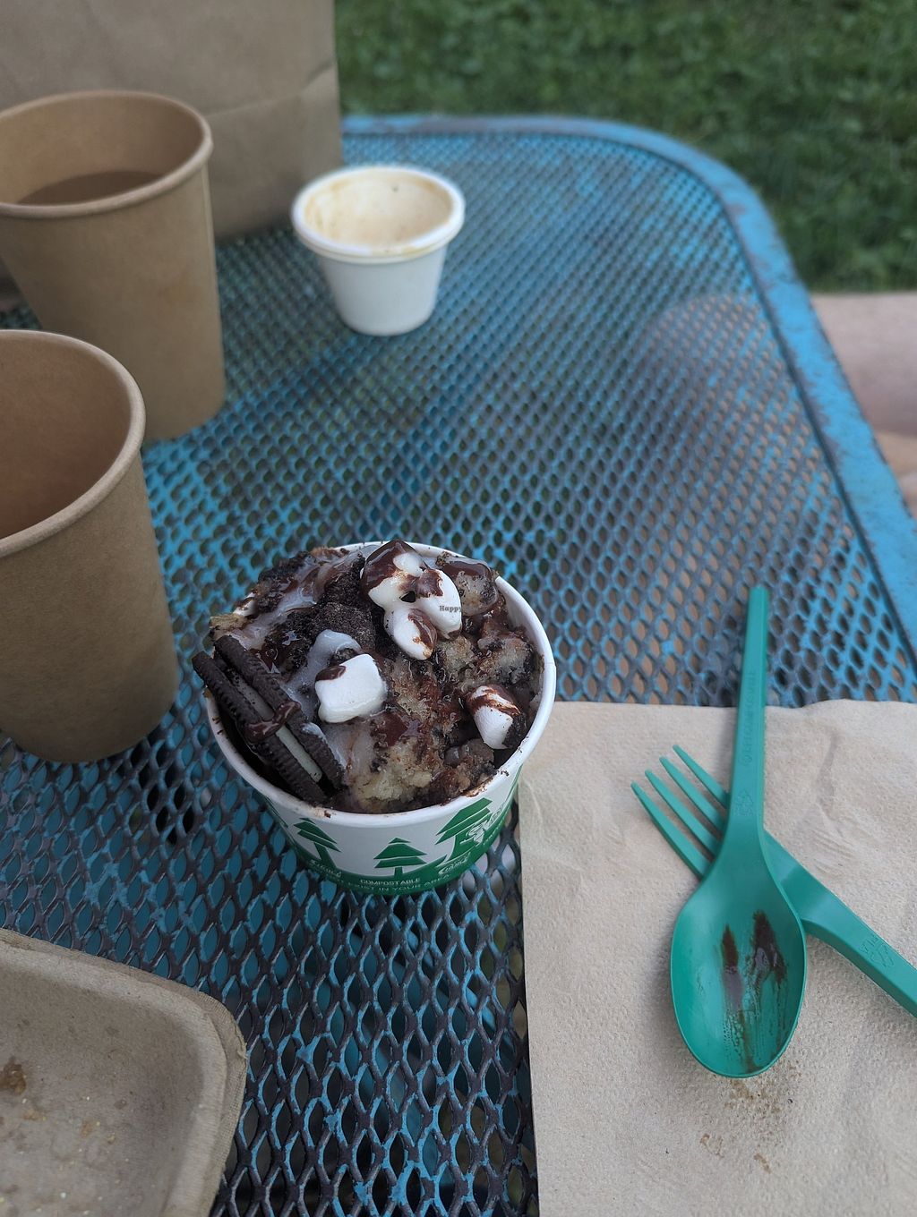 The outside dining in the yard