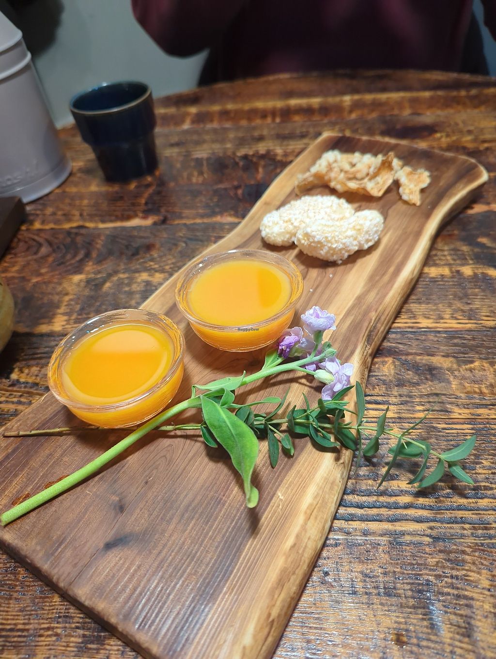 Read moreWe started with a rich sesame soup offset with a bright citrus green salad. Dried seaweed and tofu chips added a nice crunch. This was followed by a series of courses, each with multiple ingredients, many of which I had never tried and a hard time remembering (one was goat's beard). Each set of items were chosen to pair nicely, creating either harmony or contrast (e.g., fried pancake offset by pickled radish). As would be expected by the restaurant's name, several dishes came with edible flowers and there was a lovely chrysanthemum tea served as a finisher. The meal followed a nice progression with interesting and engaging steps along the way, and was thoroughly enjoyed by all, even the 2 non-vegetarians.