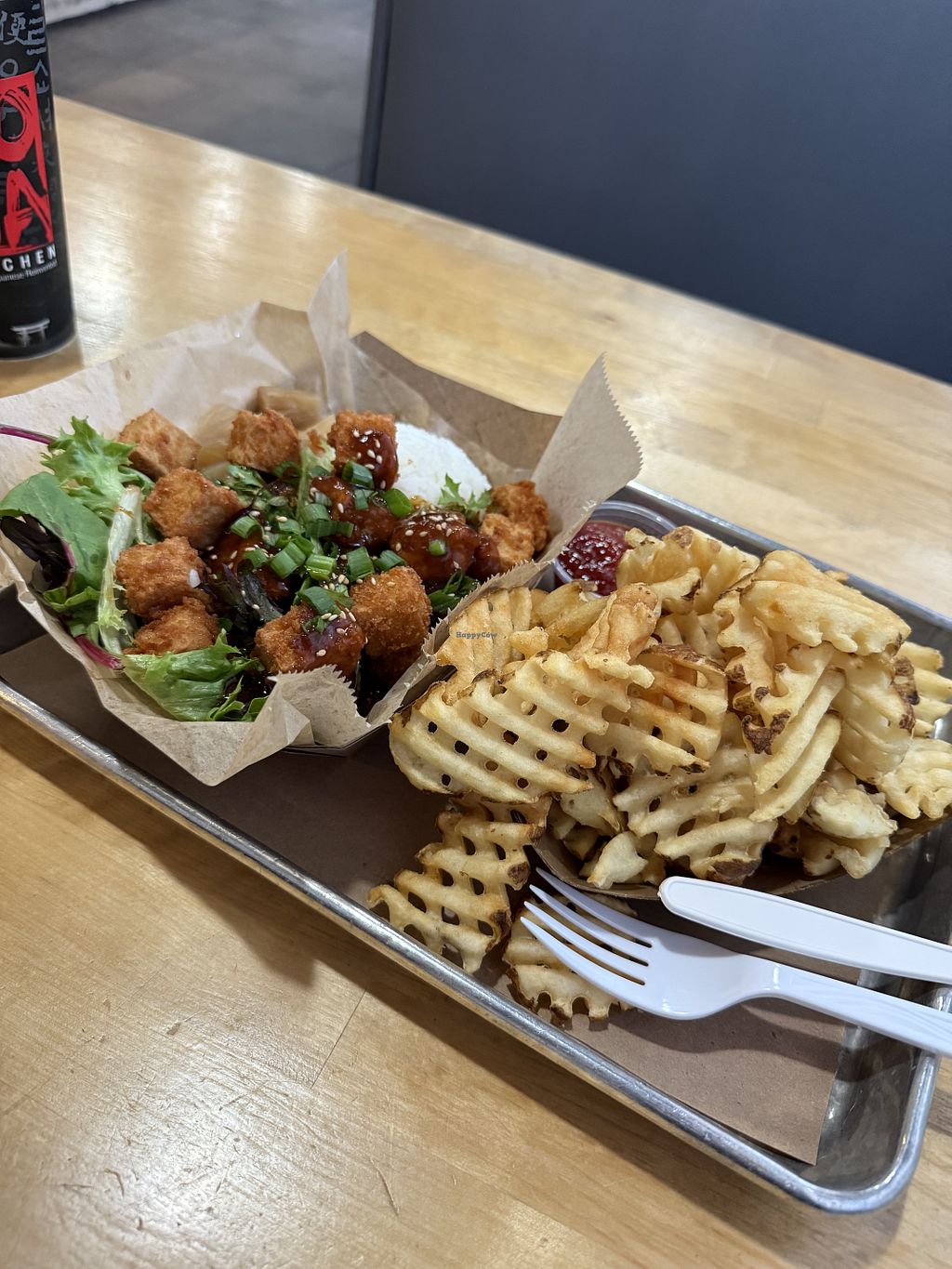 They had a vegan main rice bowl option- Teriyaki fried Tofu.