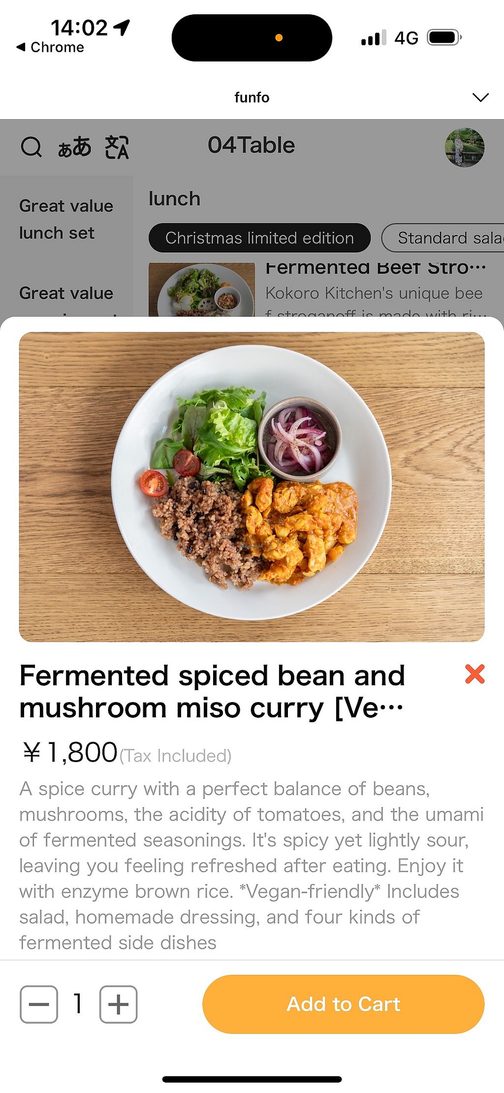 The staff was very friendly and the vegan curry was yummy. Unfortunately there’s only one vegan lunch option, but they got a vegan soup and some desserts including soy ice cream and soy milk for drinks. Vegan options were clearly marked with a V.