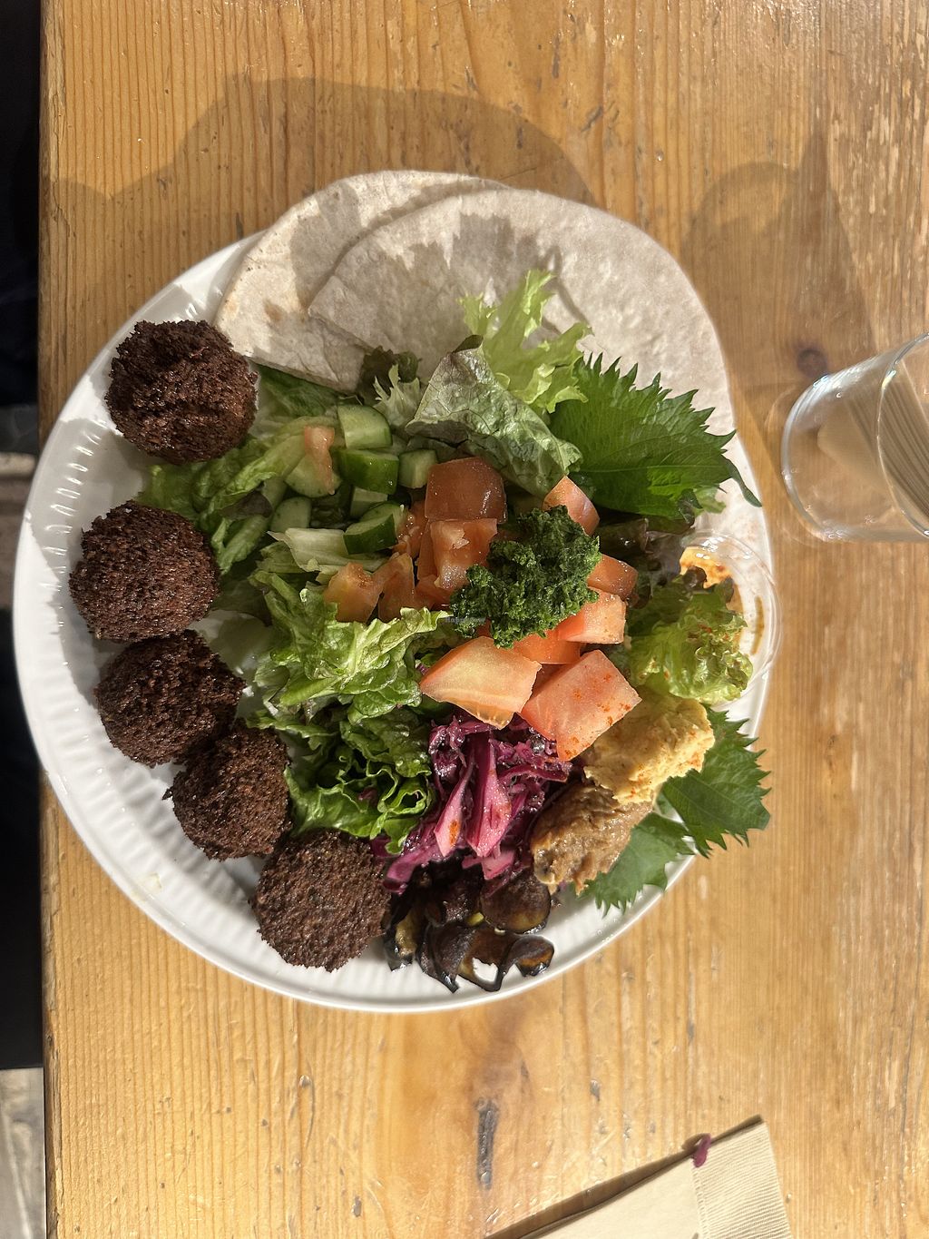 The place has a perfect atmosphere, the falafel plate is outstanding and the staff is friendly