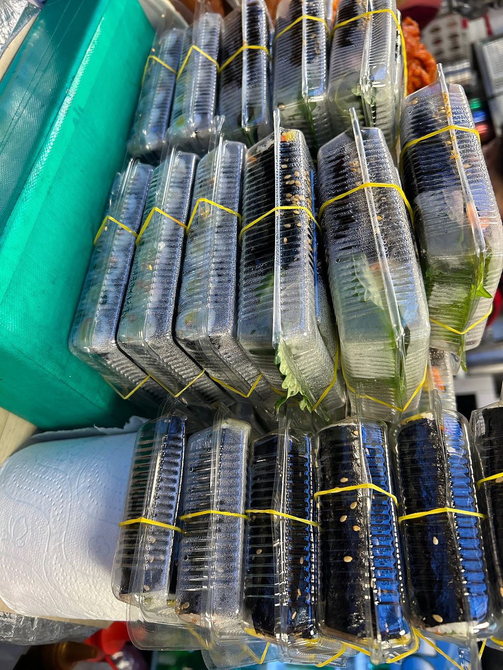 Vegetarian can try Gimbap in this mkt, per pack around KW 3000