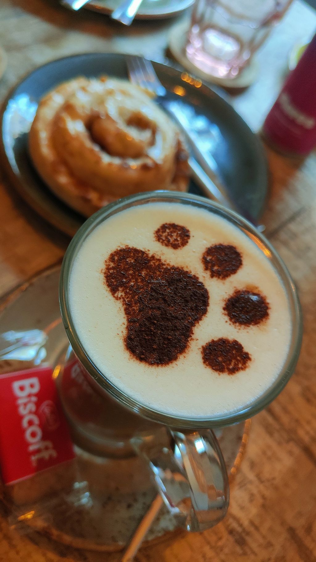Relaxed atmosphere with many vegan options. Unfortunately, our three pastries were served wrapped in plastic and tasted like dry frozen goods. But the café is very cosy!