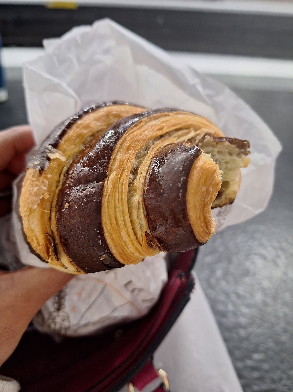Excellent vegan chocolate croissant that actually smelled heavily buttery—exactly what I would expect! How did they do it??? The croissant was 5* by itself. Wow!