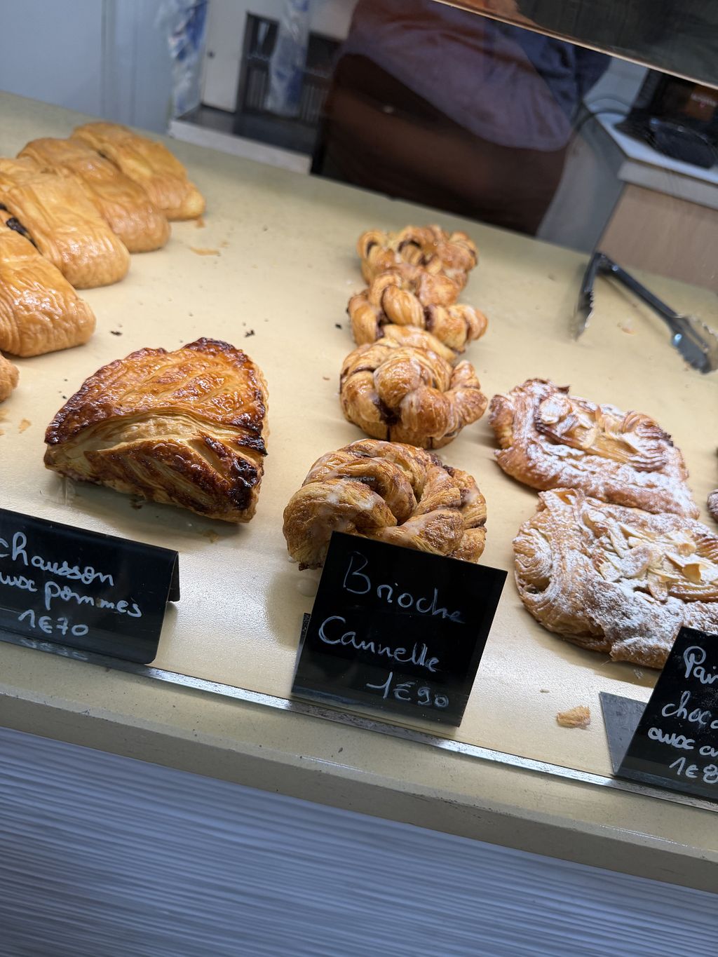Everything looked amazing. We got a croissant (super buttery), a pommes tart, a pain du chocolate and a slice of marble cake for €6. Best prices in the city. Close to the metro station. There is no seating.