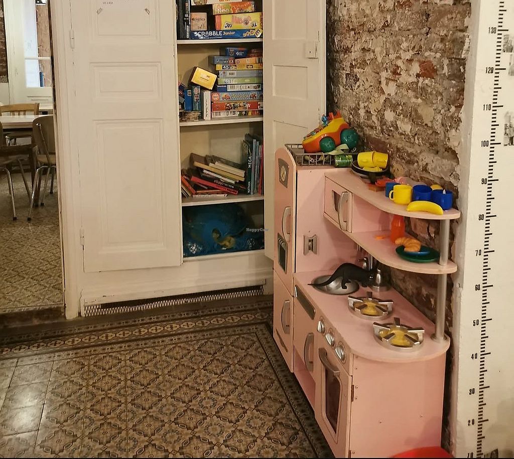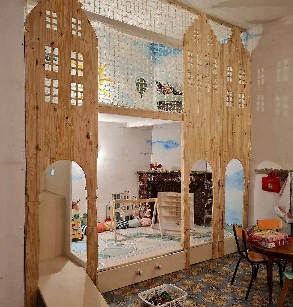 A joyful, inclusive, cafe, restaurant, shop, & event space offering shared offices, workshops, and a welcoming atmosphere for all ages. Offers lunch & snacks, including sandwiches, salads, and pasta dishes in jars, and other items for takeaway. (Vegan choices are not clearly labeled so please inquire.) Very suitable for children - offering a changing table, high chairs, mini-portions, and an indoor playground with a cabin, books, toys, and games. Also has a curated selection of local, fair trade fashion accessories & decorative items for sale. Open Mon-Fri 09:00-18:00, Sat 10:00-19:00. Closed Sun.