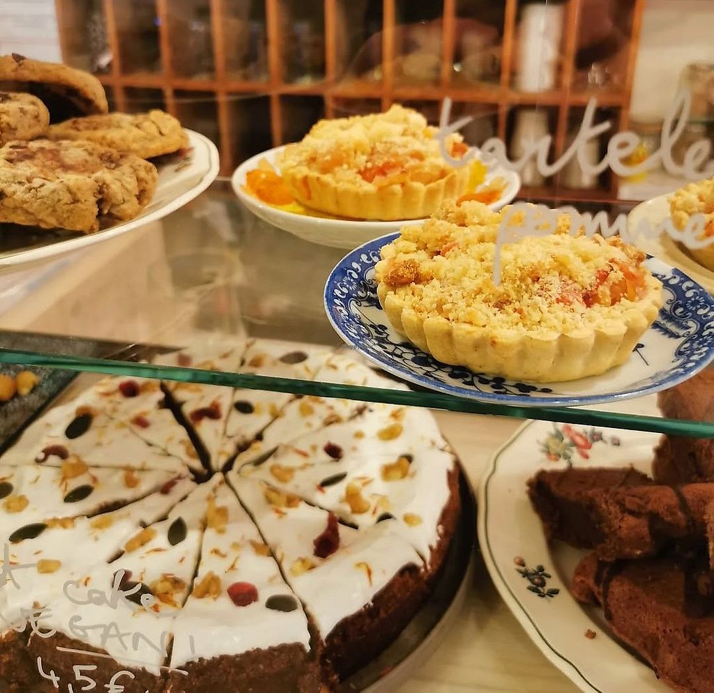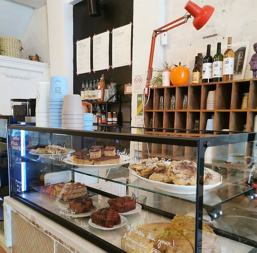 Propose quelques options véganes. Il n’y avait plus qu’un gâteau chocolat - sésame noir quand je suis passé. Il était bon, mais dommage pour le choix limité.