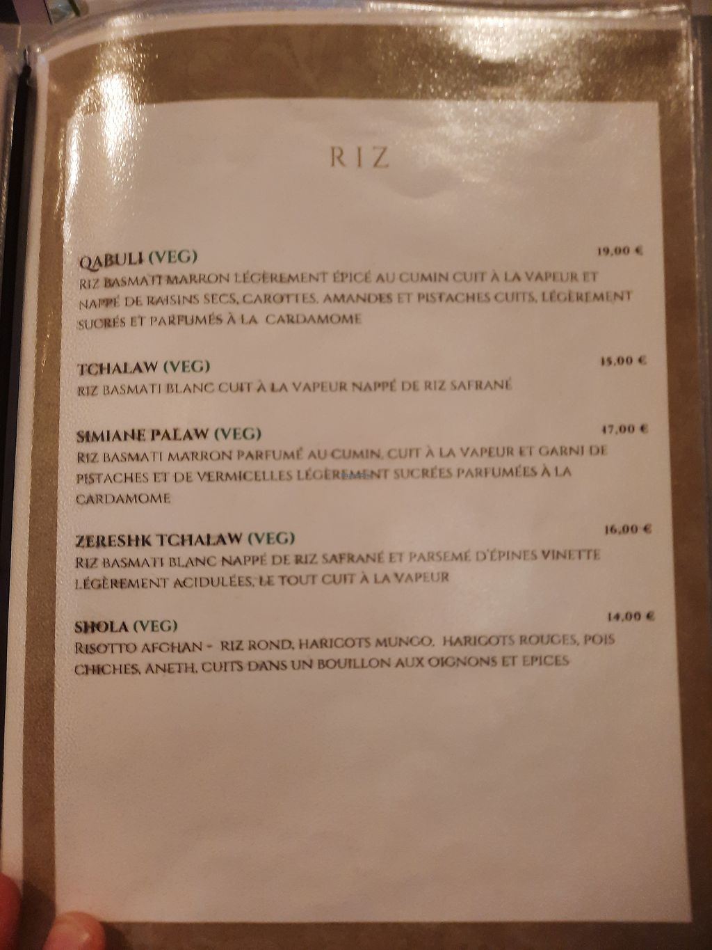 Serves meat, vegan options available. Afghan restaurant offering a full course vegan menu with starter (leek dumplings or grilled eggplant in tomato sauce), main dish (rice of choice with three vegetable sides) and dessert. Open Tue-Sat 12:00-14:00, 19:00-22:00. Closed Sun & Mon.