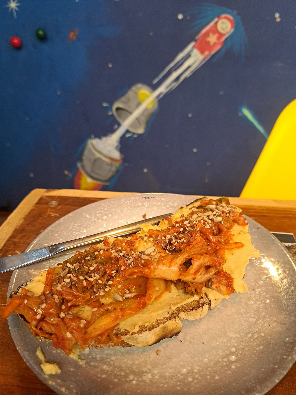 la comida estaba super buena y los dueños son muy agradables. es un lugar tranquilo y distendido donde puedes leer o también platicar con otrxs clientes. pedí un chai latte (el mejor que hacen aquí en granada para mí) y una tostada de hummus y kimchi