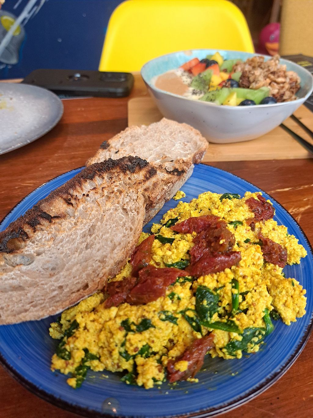 We went twice and ordered a bacon, cheese and tomato sandwich, toast with scrambled tofu, avocado (and much more), drinks and alfajores. Everything was perfect. We loved the vibes and felt very comfortable and welcome there.