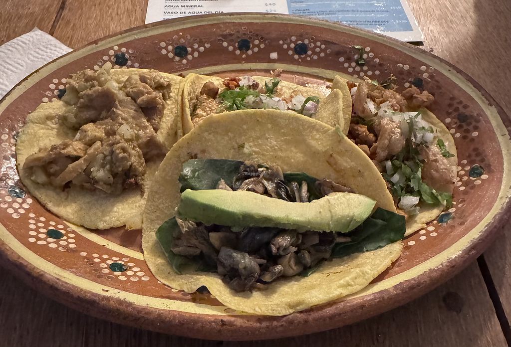 Run, don’t walk here!! Echoing other reviewers: some of the best vegan tacos I’ve ever had. I tried rajas poblanas, mole, campechano, tofish y alambres. The habanero sauce was incredible and I could have drank a few liters of their red salsa. Staff was friendly & quick, location convenient & breezy. They also deliver through tomato.mx!