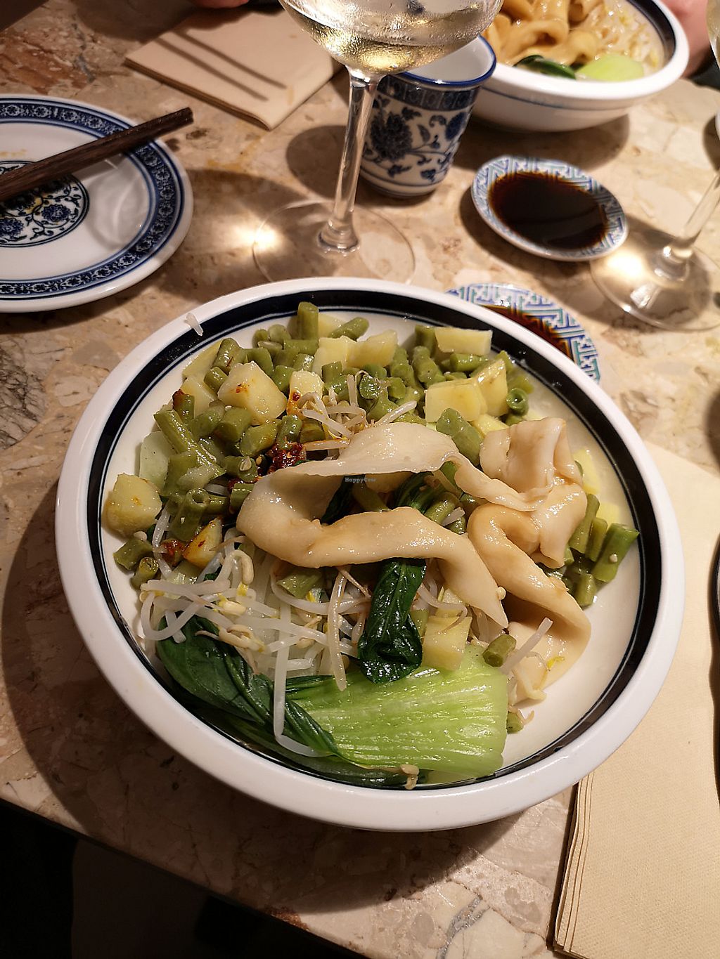 Serves meat, vegan options available. Chinese restaurant with some vegan menu options, which are labeled on the menu. Some dishes are vegan and others can be made vegan upon request - specify vegan when ordering. Open Tue-Sun 12:30-15:00, 19:30-22:30. Closed Mon.