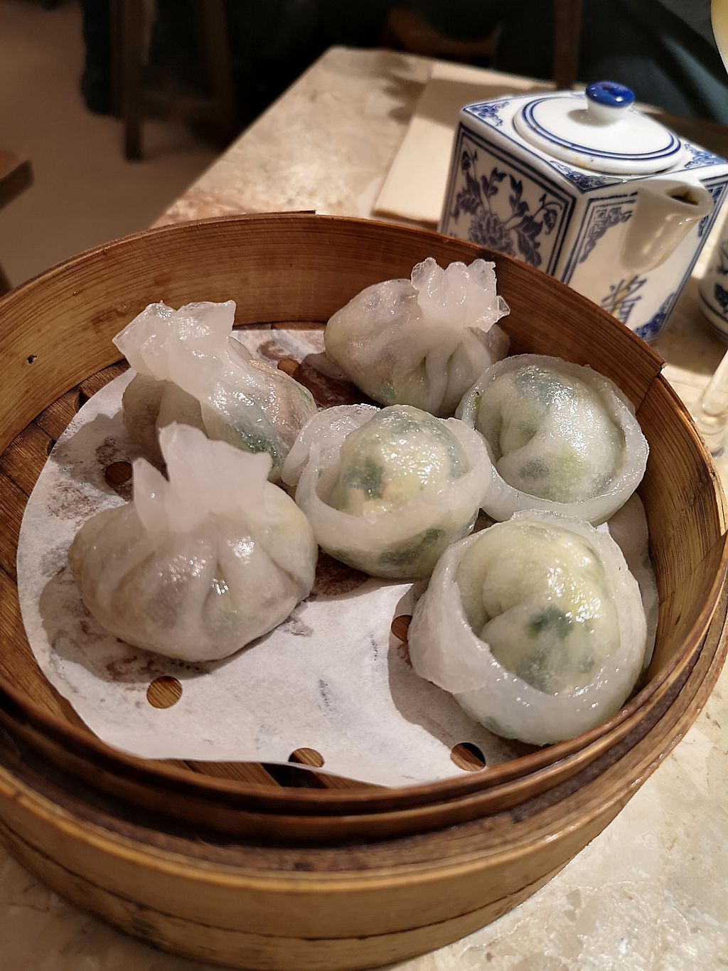 My favourite is Shui Jing Jun Gu Jiao (crystal ravioli), which are steamed with mushrooms and courgettes.