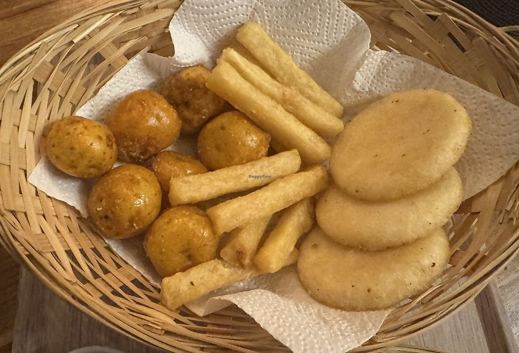 Super tasty vegan options, the team is able to advise you on what or what isn't vegan. I've had a little bit of all the options and that was perfectly fulfilling, varied and excellent. If falafels are quite common in the vegansphere, having them paired with the avocado salad coming with the patacon (fried plantain), the aji, and the cassava chips was simply delicious. The mushroom and spinach empanada definitely hits a spot, particularly since they are made with cornflour, the same goes for the arepas and the papa criollas ... you can't go wrong with these crowd favourites.