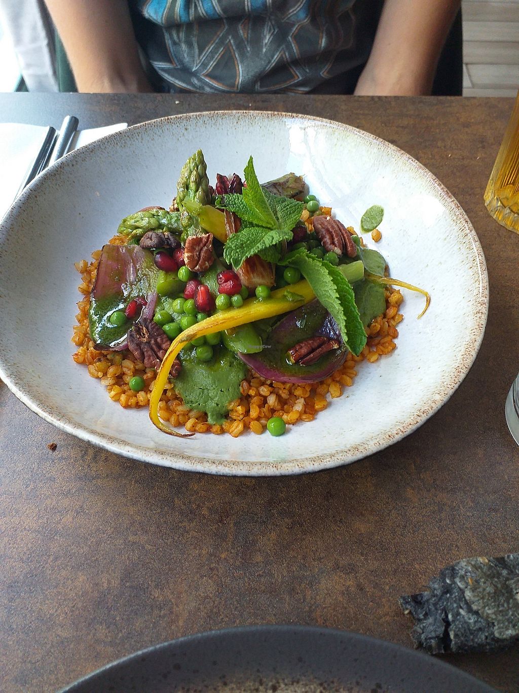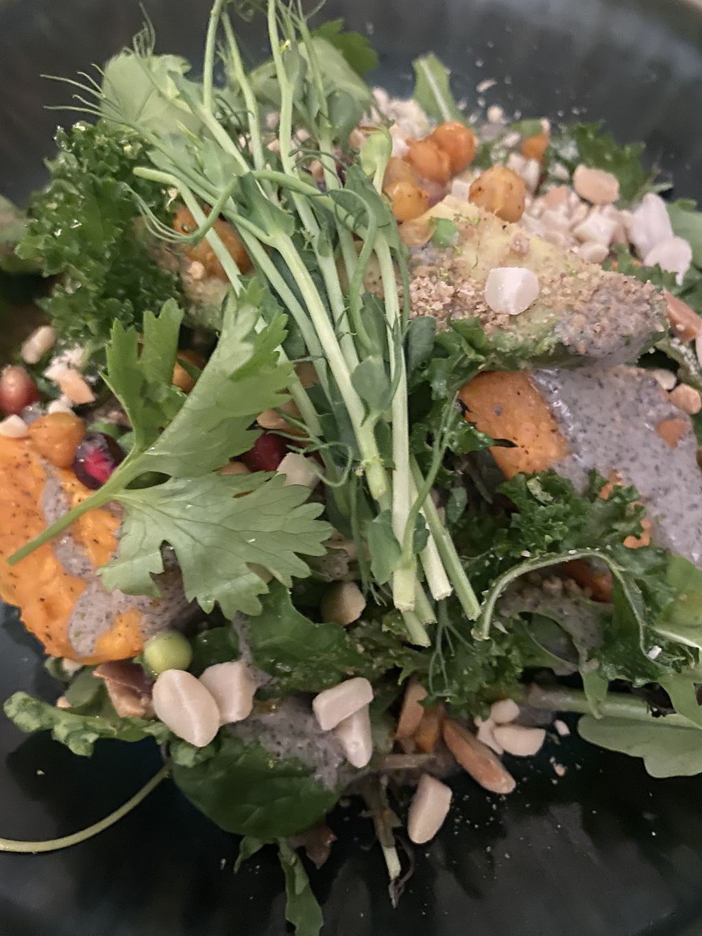 Un plat : purée de noisettes avec plein de bonnes choses dessus