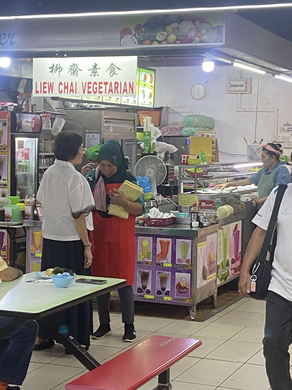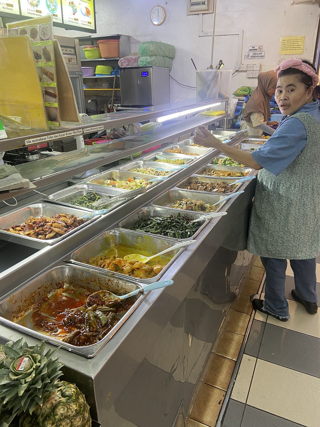 Lots of vegan options for lunch and everything I tried was delicious. Staff were not particularly friendly and didn’t speak much English so you need to figure out what is in each dish. Bit pricier than other food court buffets (8 RM for rice and 3 dishes). The food court is crowded and very loud.