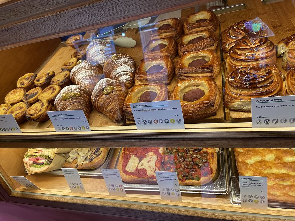 Life is a Peach offers delicious focaccias and sweet pastries such as pastel de nata, croissants, and cakes, all 100% vegan. The focaccia dough is soft on the inside with a nice crispy crust. The Danish and almond croissants are tasty and not too sweet. The coffee also tastes great. It’s nice that there is now more seating available, but it fills up quickly. So, it’s smart to make a reservation or just take something to go. Definitely a place worth visiting!