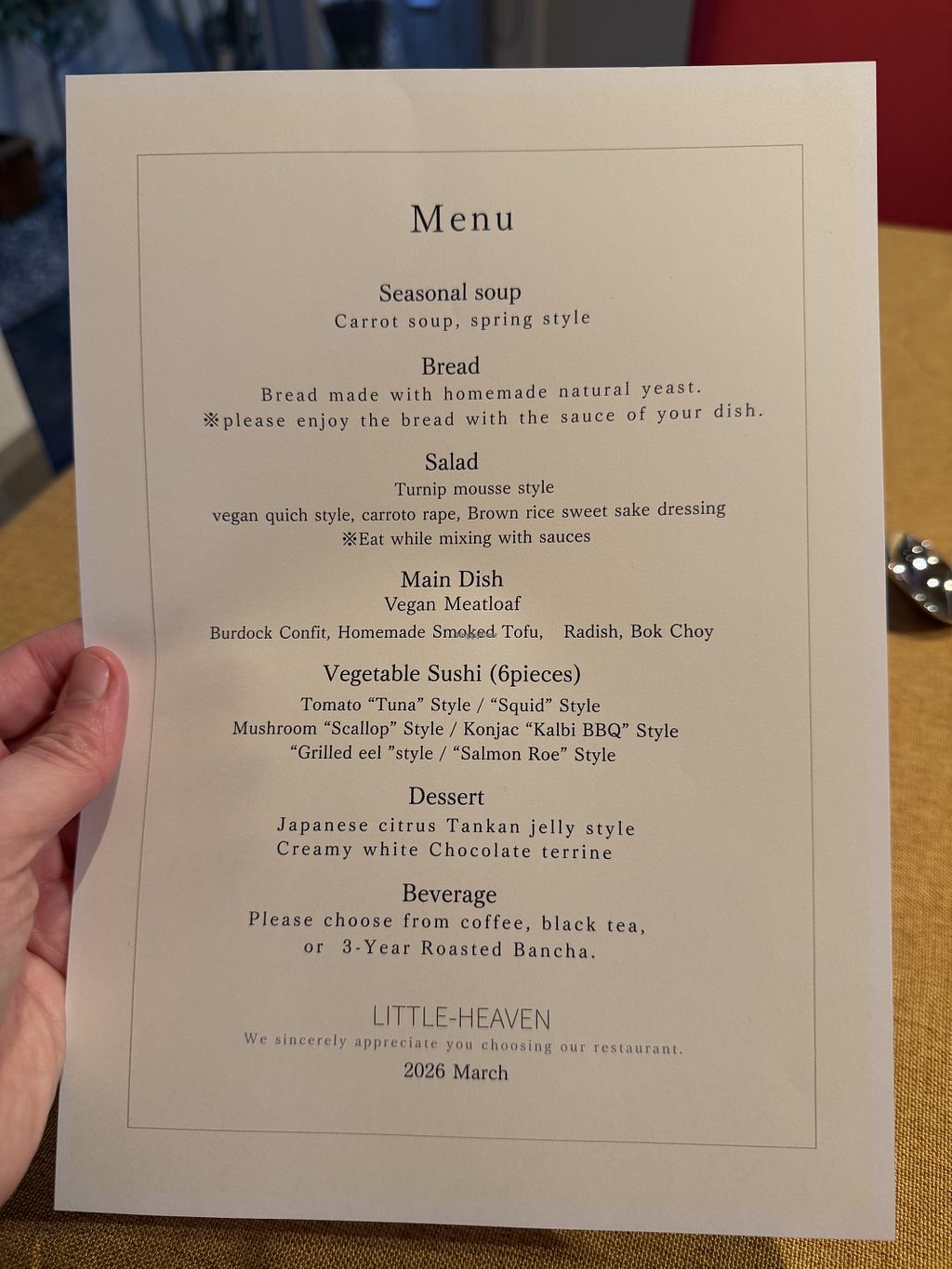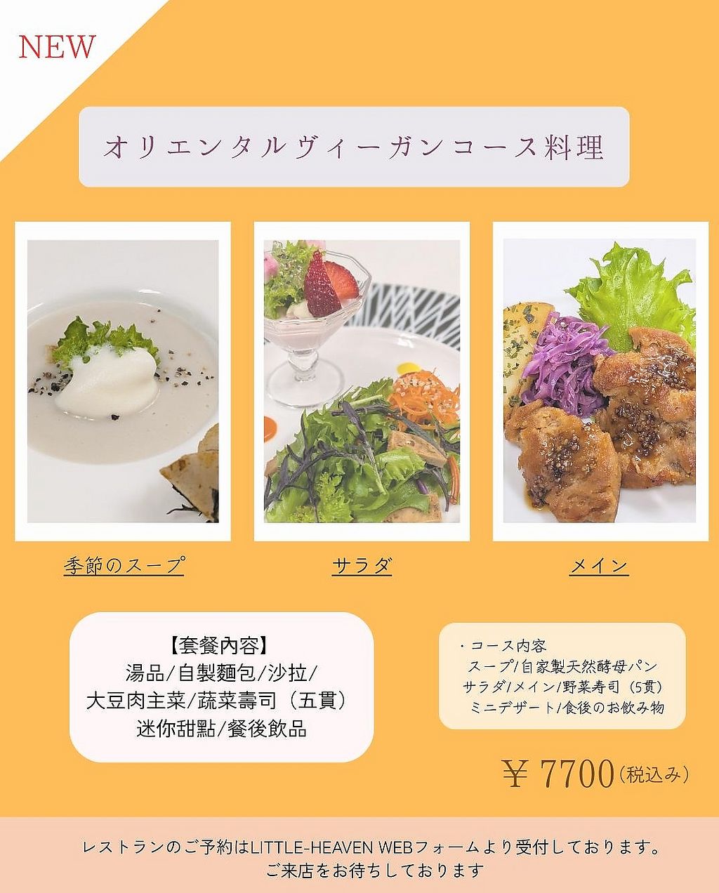 Spring Vegan Course AnnouncementAt Little Heaven, we are pleased to announce that reservations are now open for our Spring Vegan Course Menu.