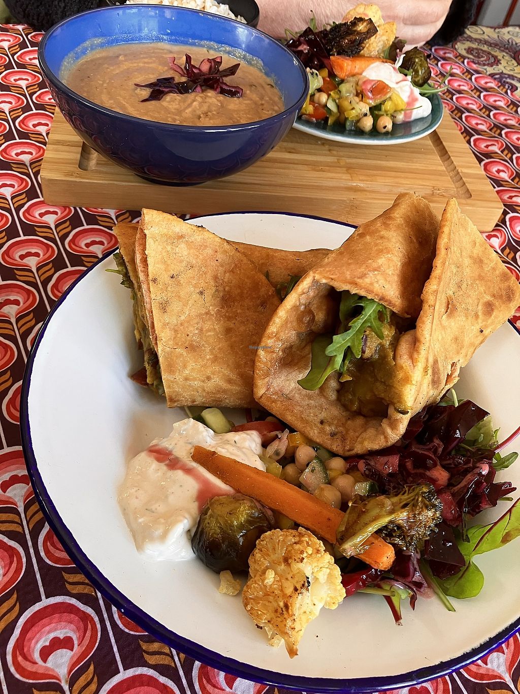 Read moreI ordered the roti dish which came with a salad on the side and some (perfectly cooked) rice. The roti itself was very good and seasoned well, maybe a little on the salty side but overall very good. Loved the soft potatoes inside and the hint of spice. Salad was fresh and the dressing was fine. i had a chai masala for drink. They make their own chai blenda and it was absolutely delicious. Portion sizes are good and prices are reasonable.