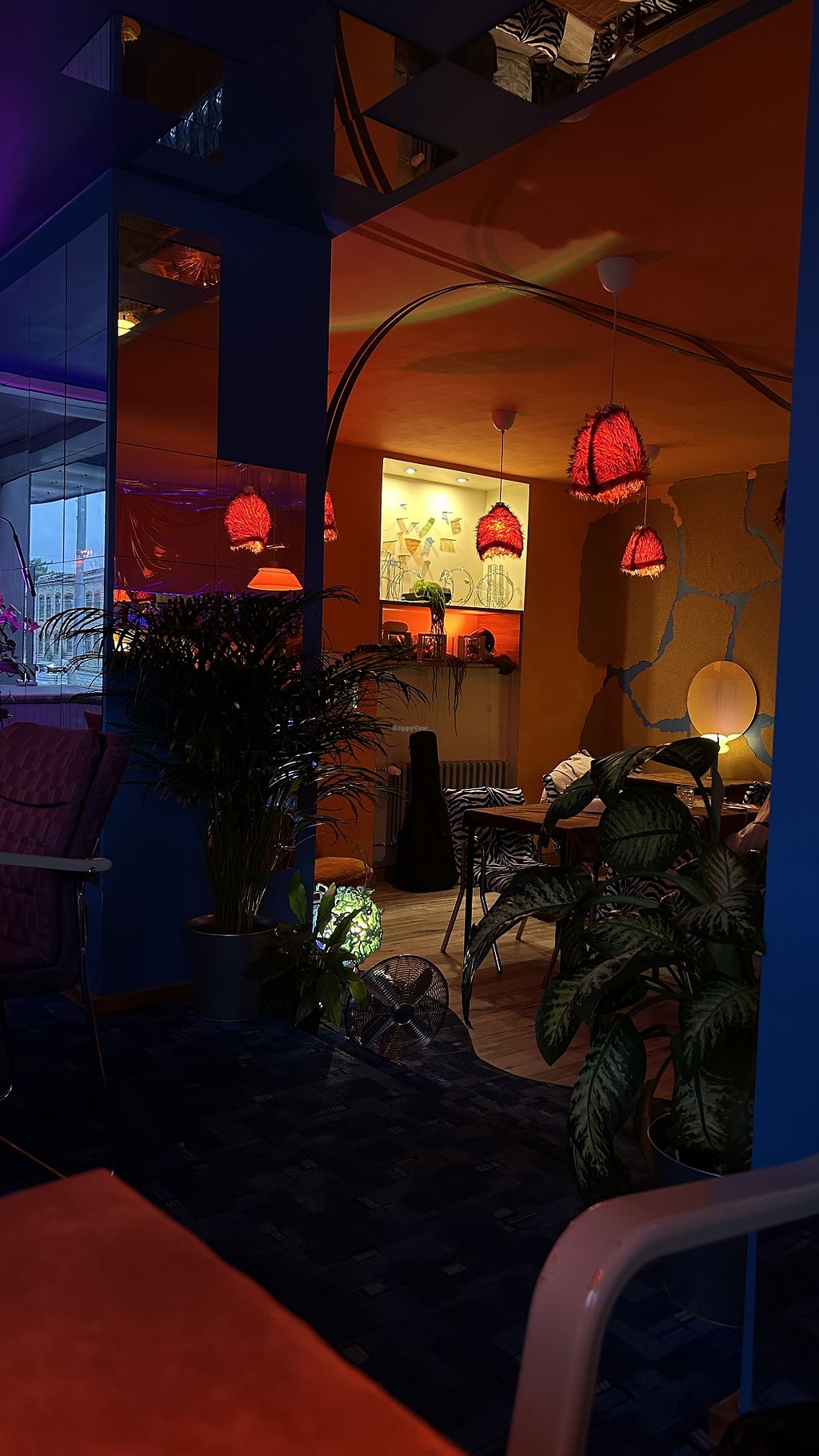 Fantastic food, great and in a good way over the top interior, good prices, many tables by the window — perfect dinner place!