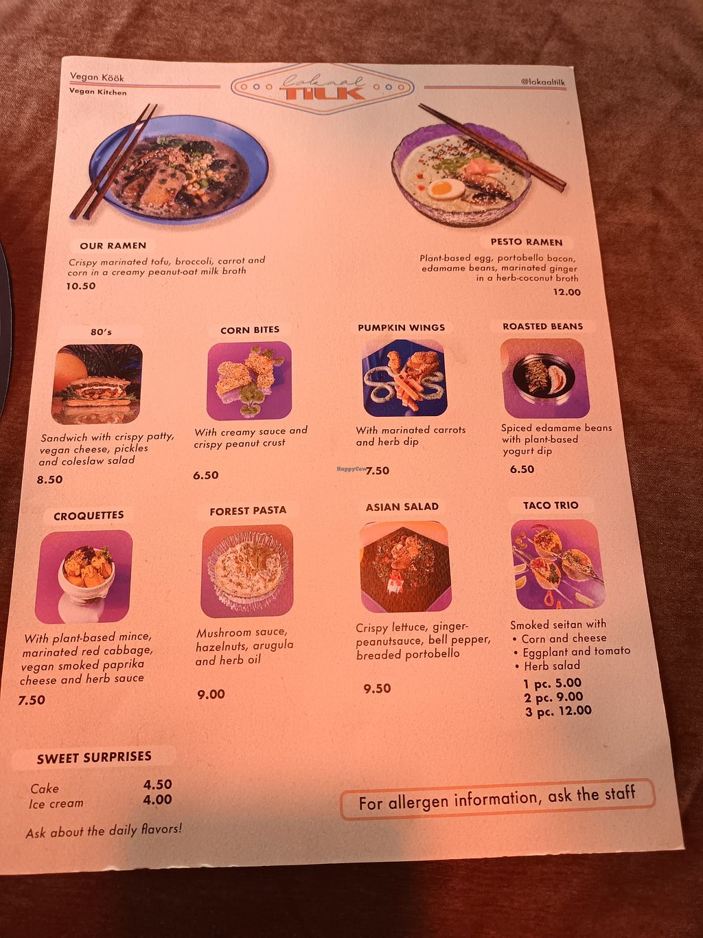 The first thing that strikes about Lokaal tilk is its interior design, which is refreshingly stylish, like a David Lynch film set. Menu is simple but innovative, featuring eight creative fusion dishes, plus some pastries, cake and ice cream. Coffee drinks and beer are available, too, plus complimentary tap water. I had the „Fresh and crunchy“, an appetiser of freshly salted cucumber and breaded portobello, and the ramen served with house chilli as main. While the ramen was average (good, but not the best in town), the breaded portobello was perfect. Lovely service, too. Can’t wait to return to try their other dishes!