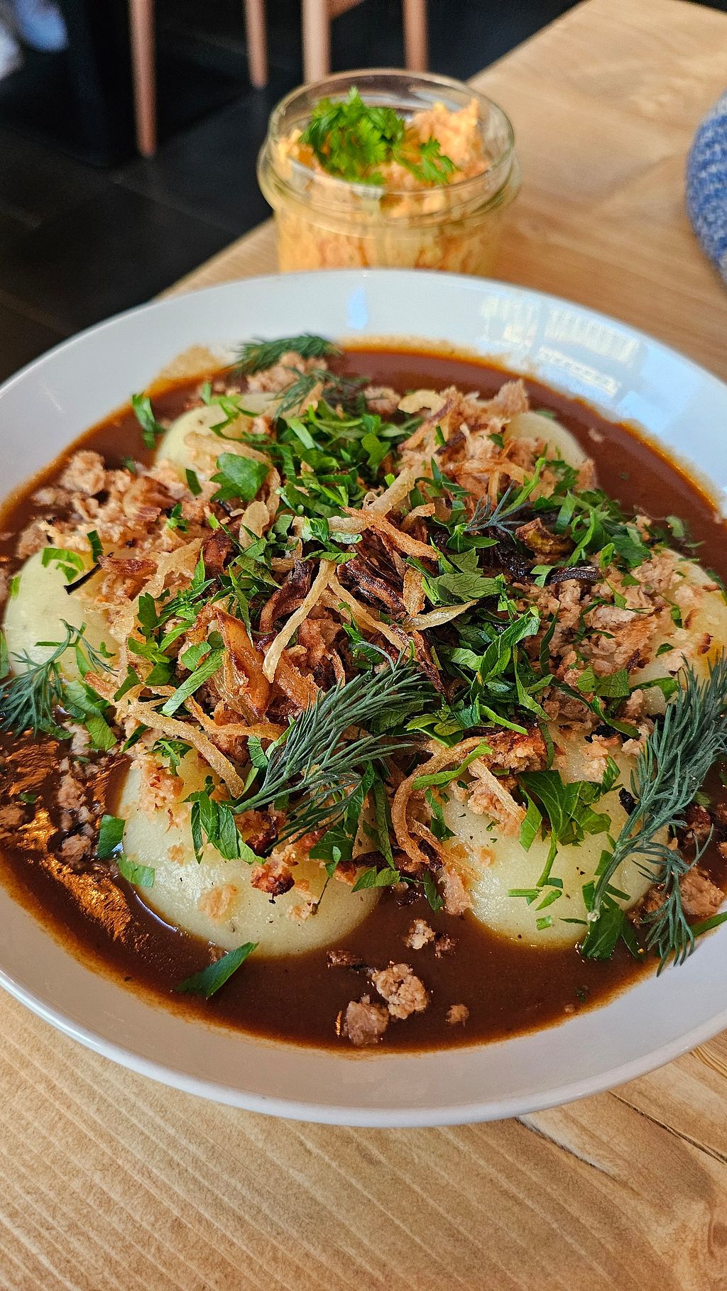 Wanted to try veganized Polish food and we were not disappointed. The food was tasty and the portions are generous. Also had a choice of alcohol free beers. Nice relaxing atmosphere, would definitely eat here again 😀