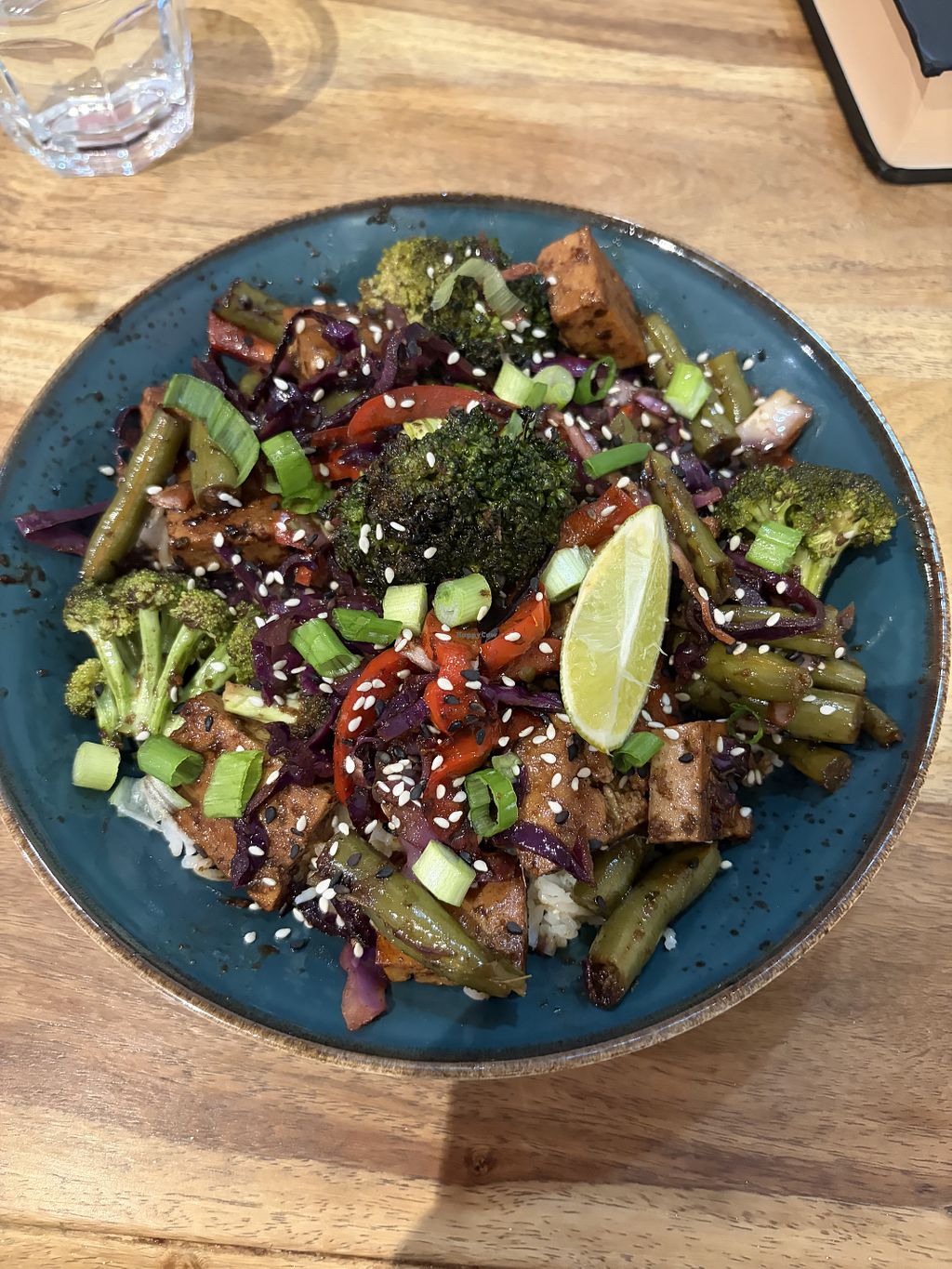 I went in hungry and came out very content. Had the bowl with chickpeas and a huge amount of veggies, with tasty dressings. I also had the optional tofu, which was nicely marinated and cooked. Friendly service, nice ambiance, handy to McGill. I will go back! #Veganuary