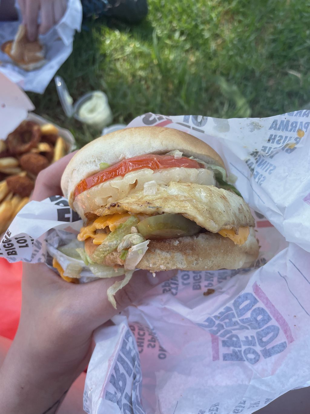 I ordered the original burger and a medium fries. I got the regular patty and the burger was nice. The bun didn’t fall apart and the cheese was melty! I got classic fries with Belgian sauce. I liked that the chips were hot and crispy.